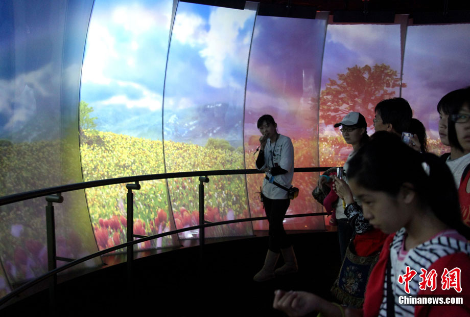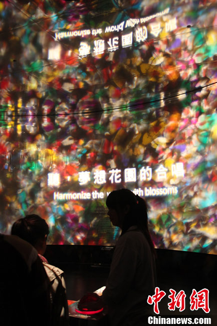 近日,臺北花博開園以來,沒有一朵真花的夢想館,卻成為最為熱門的展館。館內(nèi)引領潮流的高技術手段和創(chuàng)意構思,令參觀者放佛置身“莊周夢蝶”的神奇世界。圖為造型奇特的機械花群,動態(tài)演繹“花械花開”創(chuàng)意。