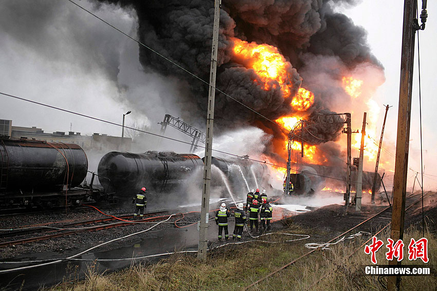 當?shù)貢r間11月8日,波蘭比亞韋斯托克的兩節(jié)運油車廂發(fā)生爆炸,造成10列車廂起火,至少1人受傷。
