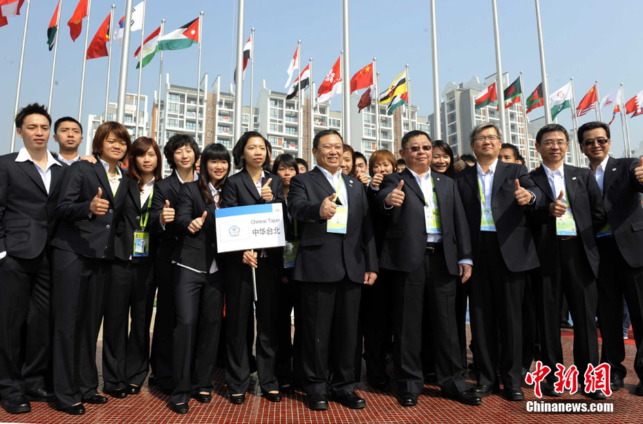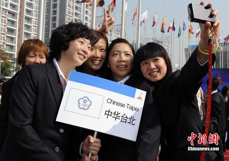 11月11日,中華臺(tái)北代表團(tuán)舉行廣州亞運(yùn)會(huì)亞運(yùn)村升旗儀式。中新社記者 王東明 攝