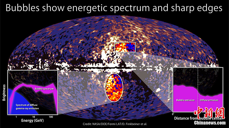 研究人員稱,宇宙氣泡結(jié)構(gòu)表明數(shù)百萬(wàn)年前存在著爆炸式的恒星誕生,或者它們形成于銀河系中心一個(gè)超大質(zhì)量黑洞噴射大量氣體和灰塵之中。美國(guó)哈佛-史密遜天體物理學(xué)研究中心的道格-芬克貝涅(Doug Finkbeiner)是該項(xiàng)研究負(fù)責(zé)人,他說(shuō):“目前最新發(fā)現(xiàn)的銀河系巨大氣泡結(jié)構(gòu)仍存在著謎團(tuán),我們并不能完全理解它的特性或者起源!