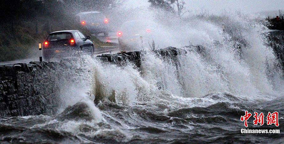 當(dāng)?shù)貢r(shí)間11月11日,英國(guó)和荷蘭沿海地區(qū)遭遇狂風(fēng)暴雨天氣的襲擊。圖為北愛爾蘭沿海地區(qū)遭遇狂風(fēng)暴雨襲擊。