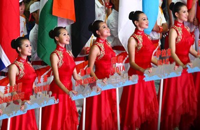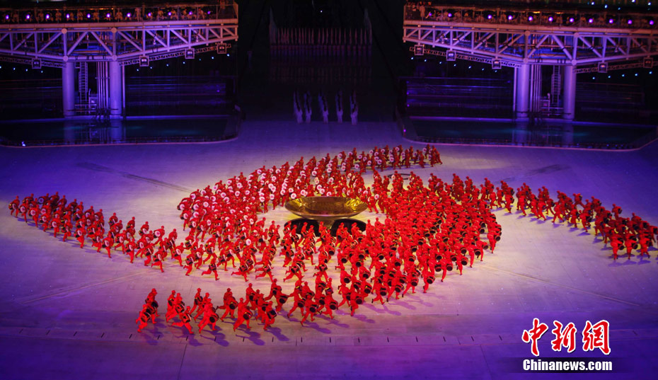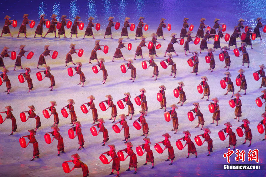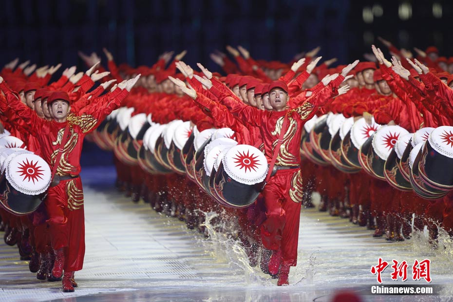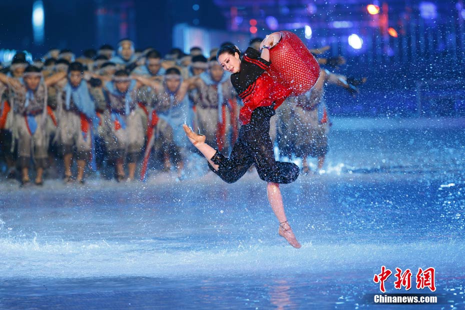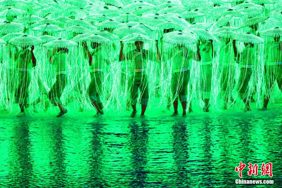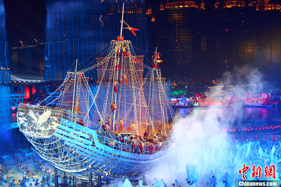 11月12日晚,第16屆亞運(yùn)會(huì)開幕式在廣州海心沙舉行,宏大、絢麗的文藝匯演《啟航》給亞洲以及世界觀眾帶來藝術(shù)盛宴。水是廣州亞運(yùn)開幕式最主要的創(chuàng)意元素,幕式的表演從一滴水到汪洋大海,從一葉扁舟到巨型帆船,從一汪情水到滔天巨浪。演員們用各種表演手段盡情展現(xiàn)水的魅力,表達(dá)水是生命之源、滋養(yǎng)萬物、呵護(hù)人類文明的精神內(nèi)涵,令人嘆為觀止。中新社記者 杜洋 攝