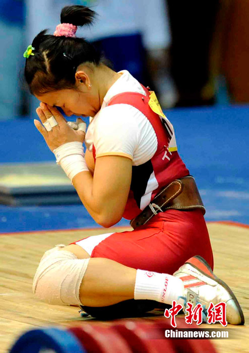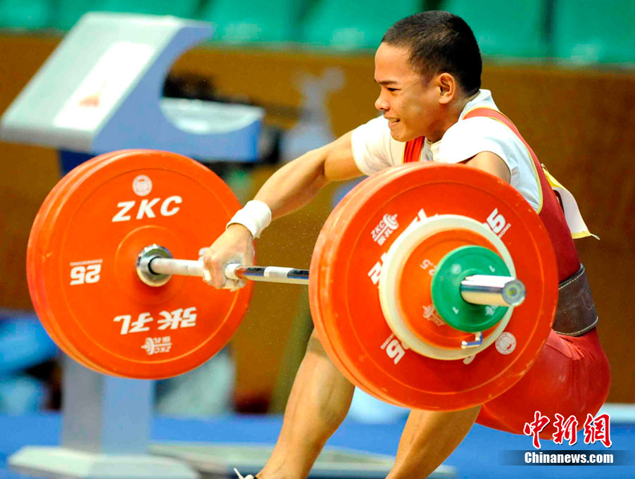 11月13日,廣州亞運(yùn)會(huì)舉重比賽全面開戰(zhàn),賽場(chǎng)上選手們失利的瞬間讓人揪心不已。 中新社記者 王東明 攝