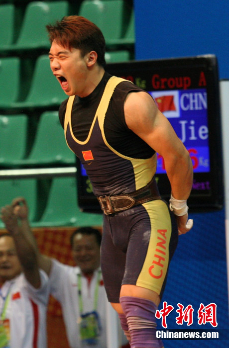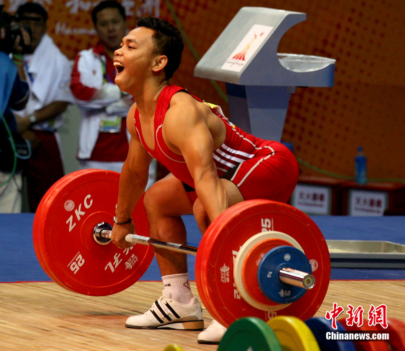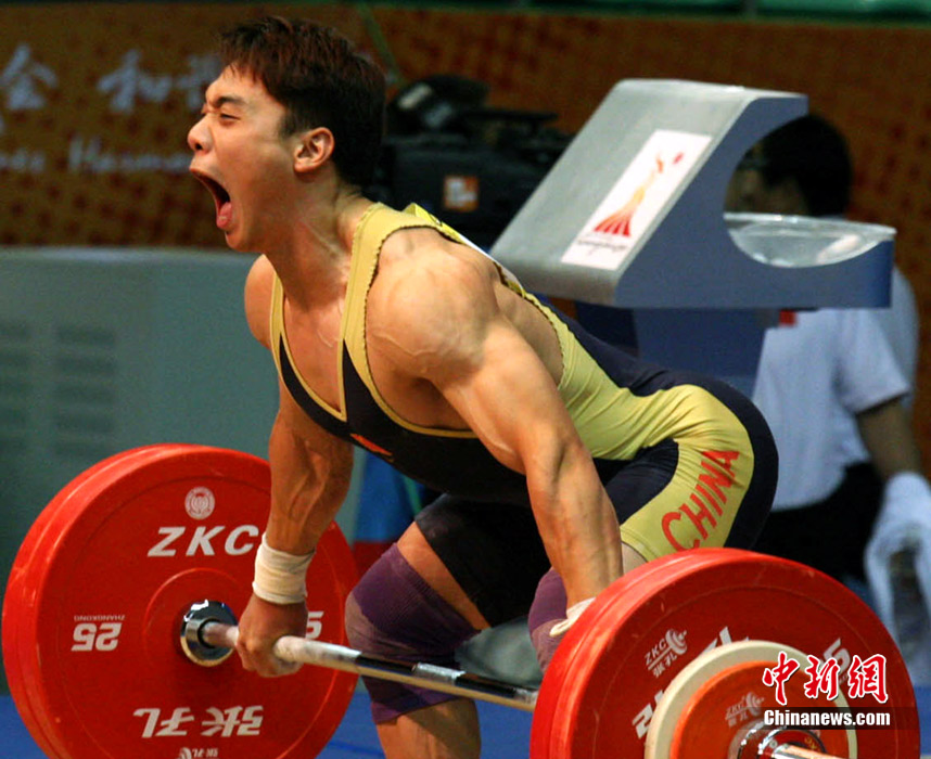 11月14日,廣州亞運(yùn)會(huì)男子舉重62公斤級(jí)比賽在東莞體育館舉行,賽場上不斷傳出運(yùn)動(dòng)員大吼聲。大聲吼叫不但能為自己打氣,同時(shí)還能使胸腔腹腔壓力急劇升高,使上下肢和腰背肌有了更穩(wěn)定的支撐點(diǎn),更容易取得好的成績,大吼已經(jīng)成為舉重比賽中最帥氣的一道風(fēng)景。中新社記者 張茵 攝