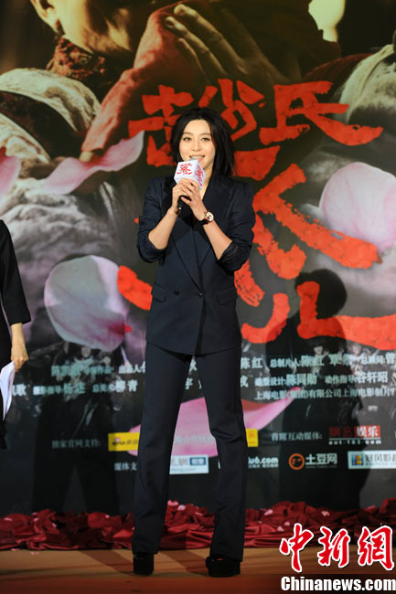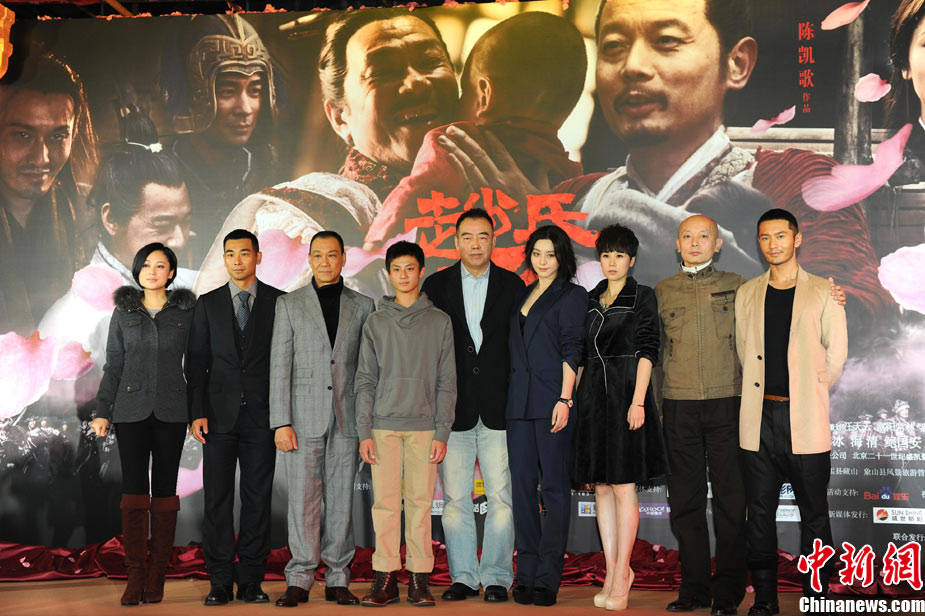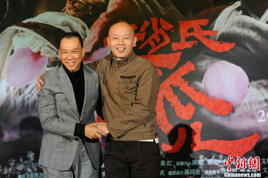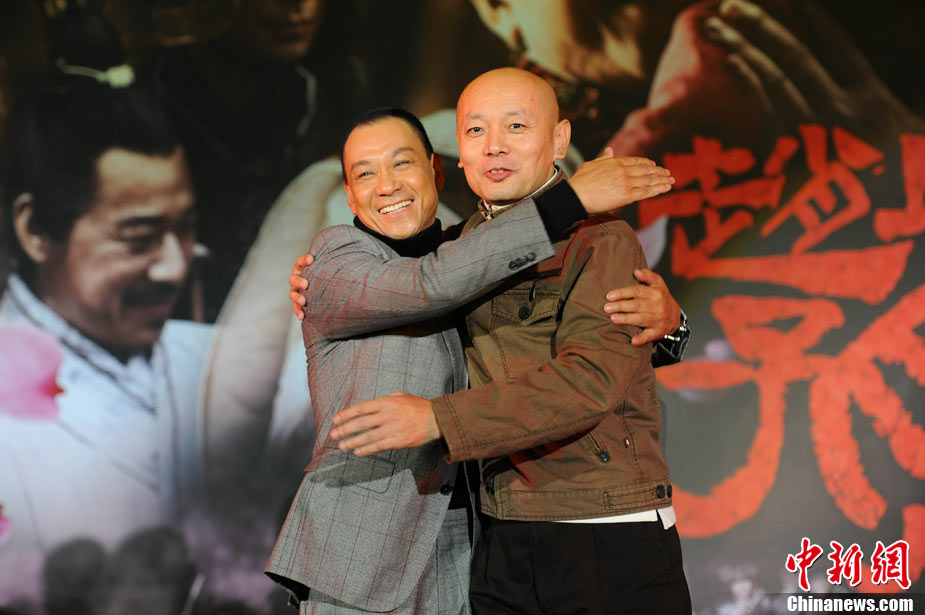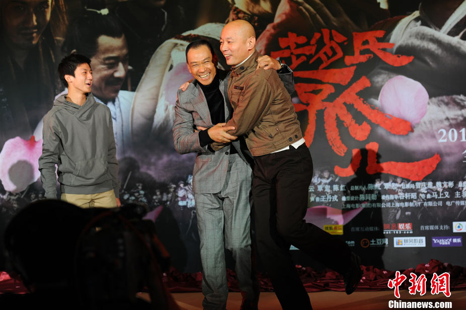 11月15日,賀歲檔大片《趙氏孤兒》群星閃耀媒體見面會在北京盛大舉辦。導演陳凱歌攜主演葛優(yōu)、王學圻、黃曉明、范冰冰、趙文卓、海清、趙文浩出席。葛優(yōu)、王學圻飾演的程嬰和屠岸賈在片中有諸多較量,此前傳聞兩位大腕暗自使勁、互相飚戲。為了打破傳言,現(xiàn)場葛優(yōu)、王學圻上演“親密熊抱”,王學圻出人意料的“背摔”讓葛優(yōu)險些摔倒在地,F(xiàn)場氣氛熱烈,笑聲不斷。中新社記者 李學仕 攝