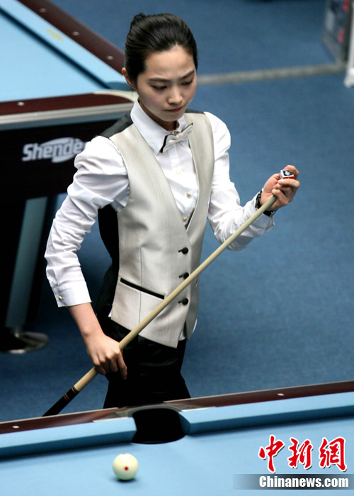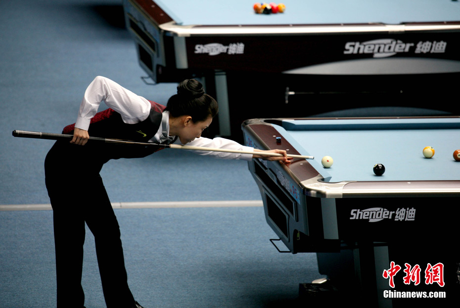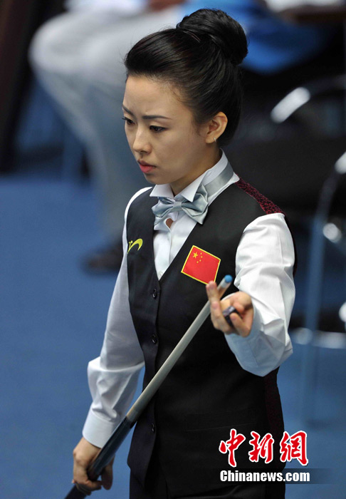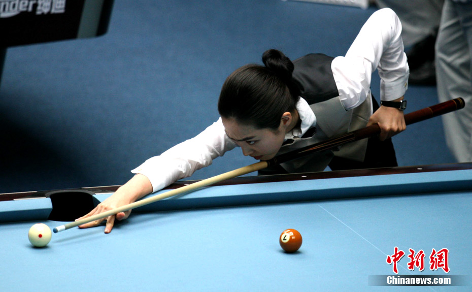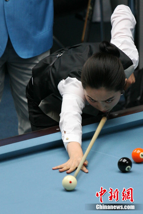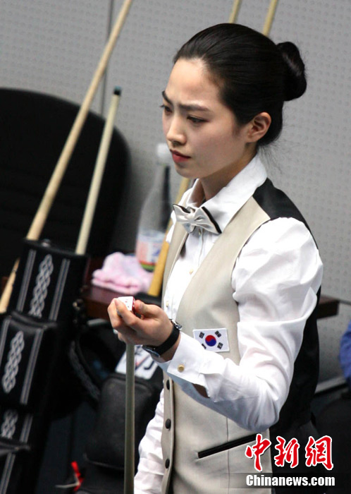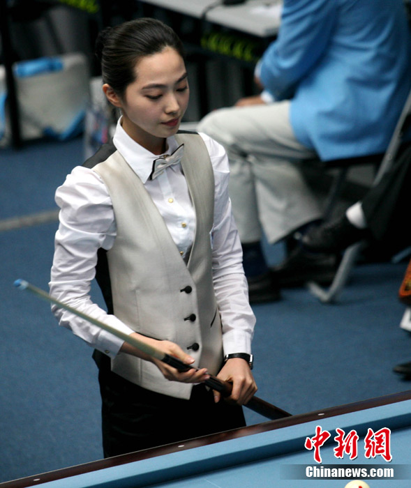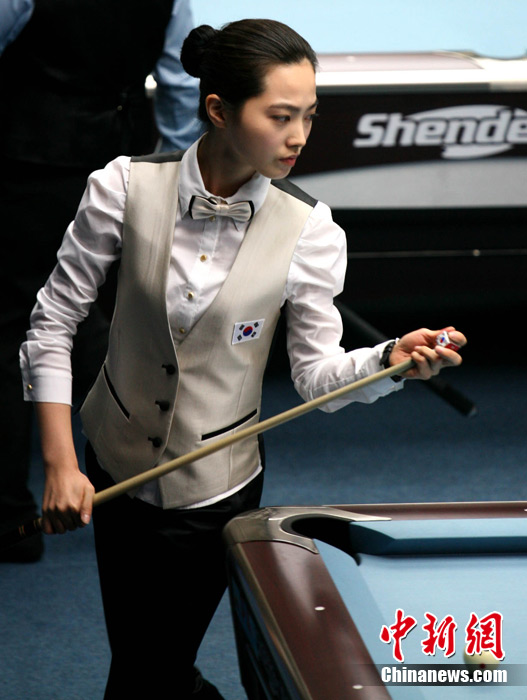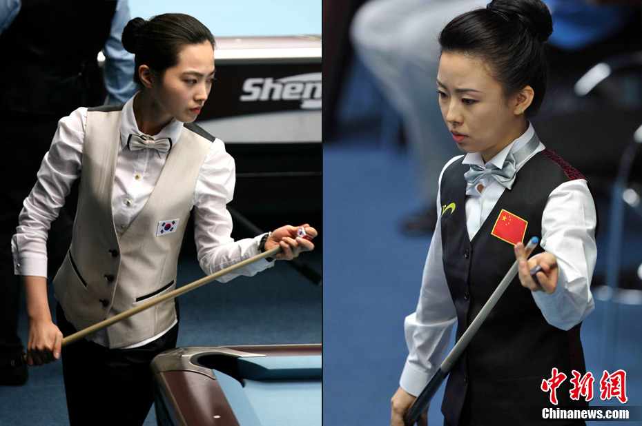 11月15日,女子美式九球單打預(yù)賽,來自中國的潘曉婷和來自韓國的車侑藍(lán)(車俞嵐)分別戰(zhàn)勝對(duì)手,晉級(jí)下一輪,兩位知名選手的亮相,掀起場(chǎng)內(nèi)的“美麗風(fēng)暴”。