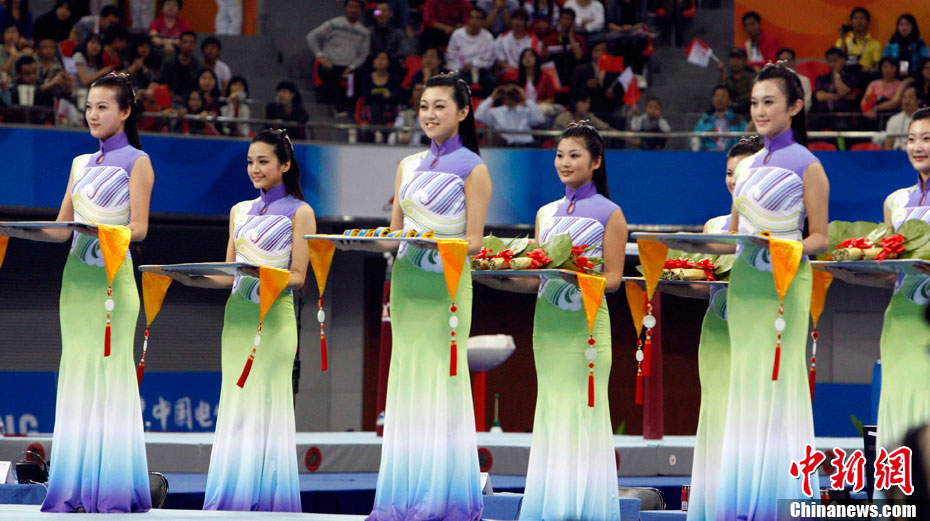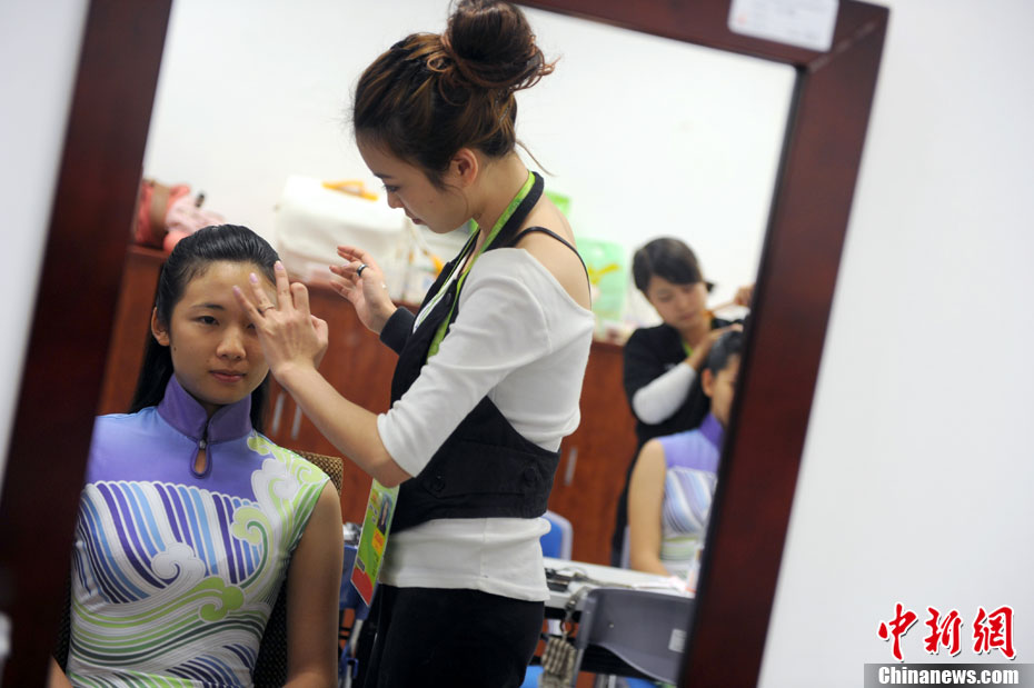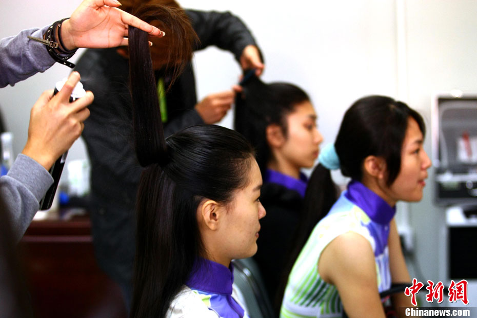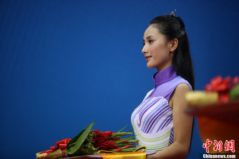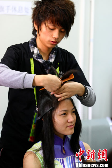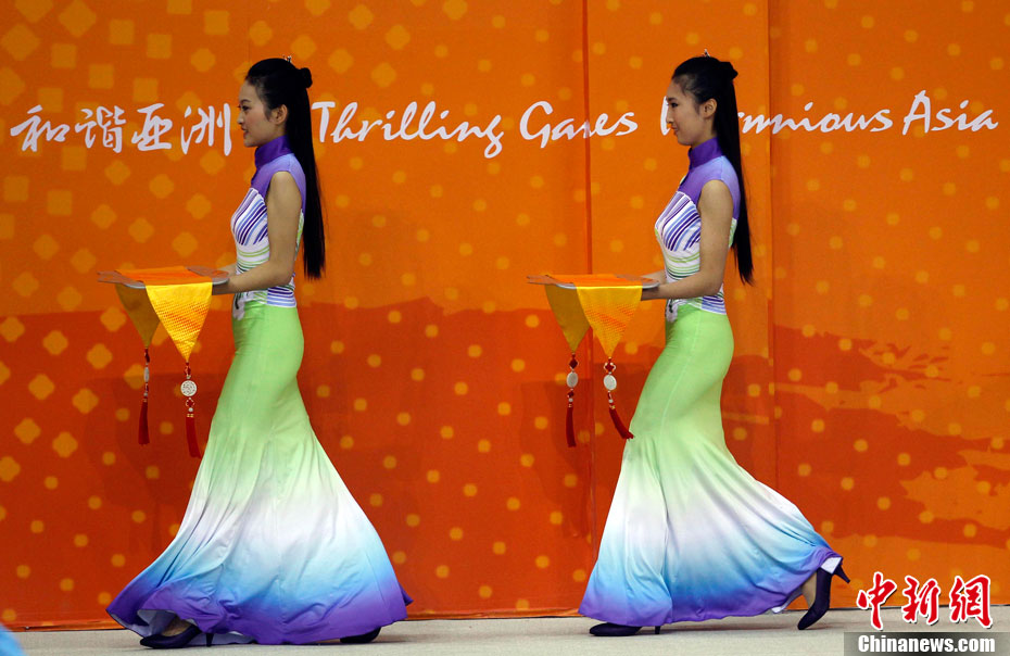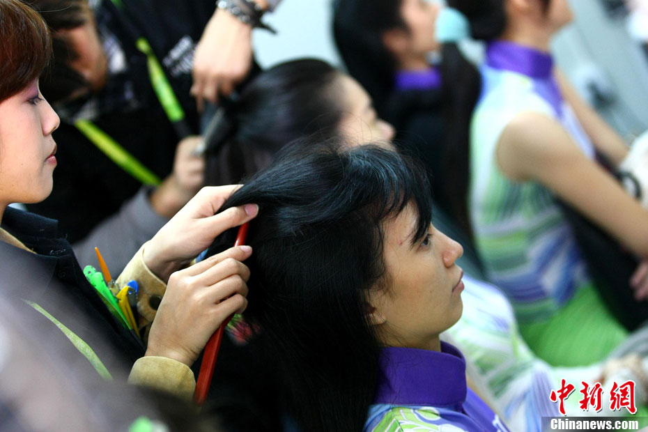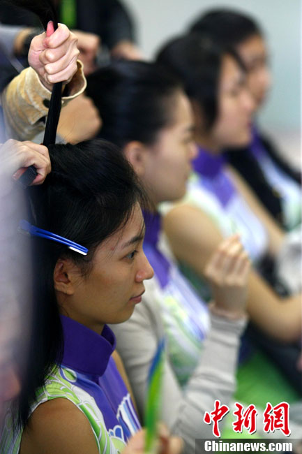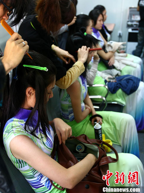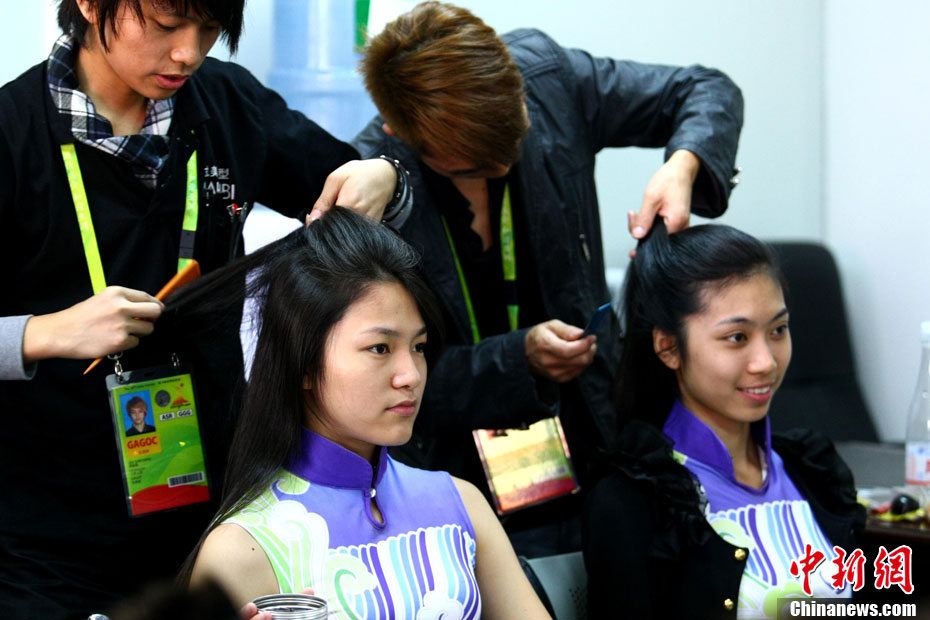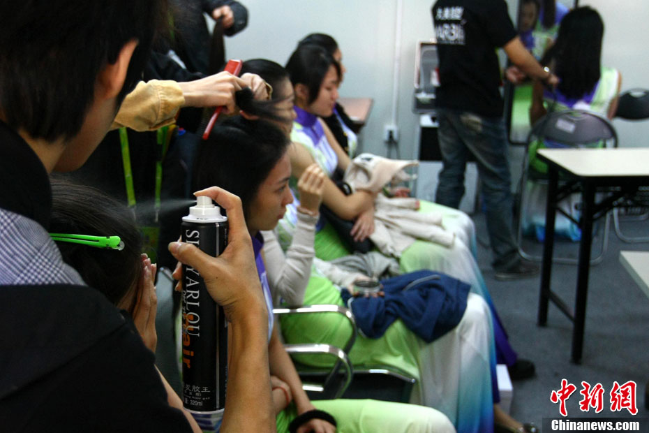 廣州亞運會比賽開始后,對于這些美麗的姑娘們“戰(zhàn)斗”才剛剛打響,她們每天早上6點半就起床,趕到賽場,開始4個小時的準備工作——化妝、做頭發(fā)、整體造型,這一切都為頒獎典禮的那短短一刻。