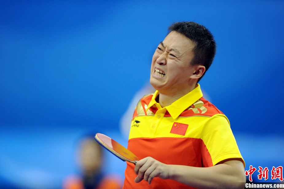 第16屆亞運(yùn)會(huì)正在廣州酣戰(zhàn),精彩亞運(yùn)體現(xiàn)在賽場內(nèi)外。中國乒乓軍團(tuán)一舉拿下亞運(yùn)女子團(tuán)體、男子團(tuán)體金牌,賽場上留下了乒乓健兒的運(yùn)動(dòng)風(fēng)采---乒乓球的魅力。圖為乒乓名將馬琳賽場風(fēng)采。中新社記者 陳文 攝