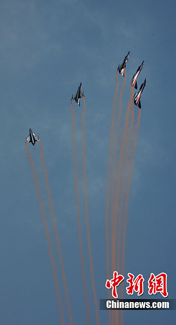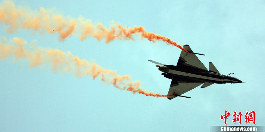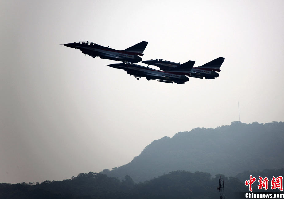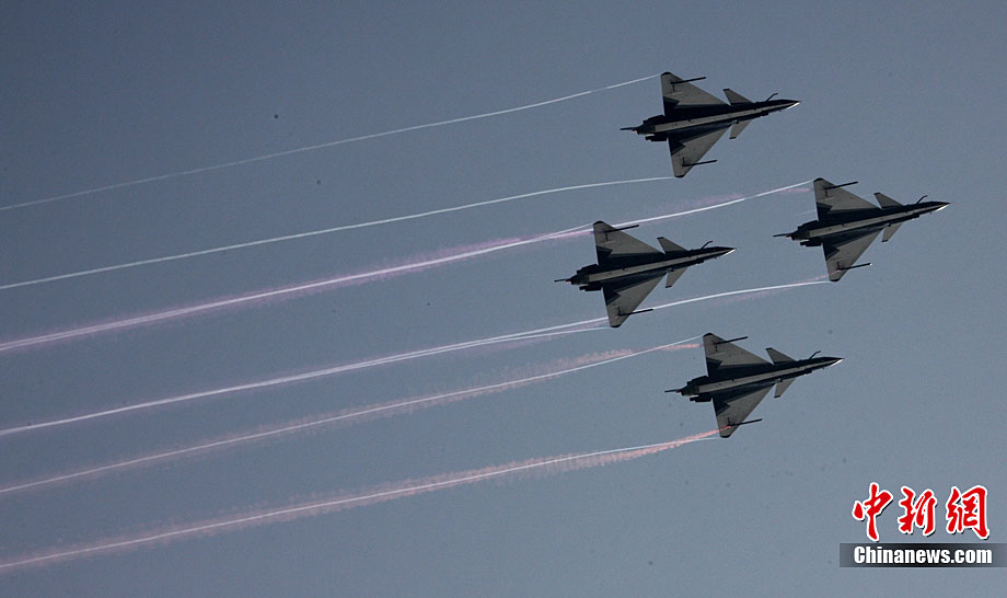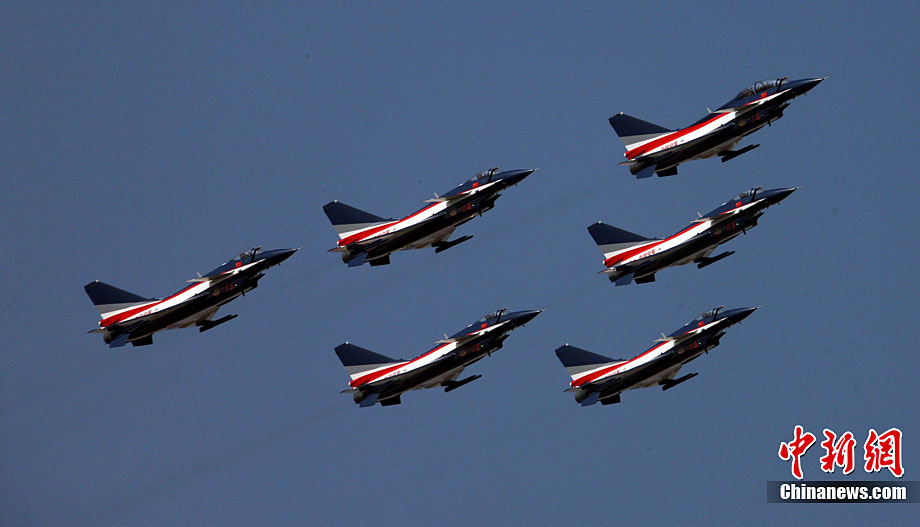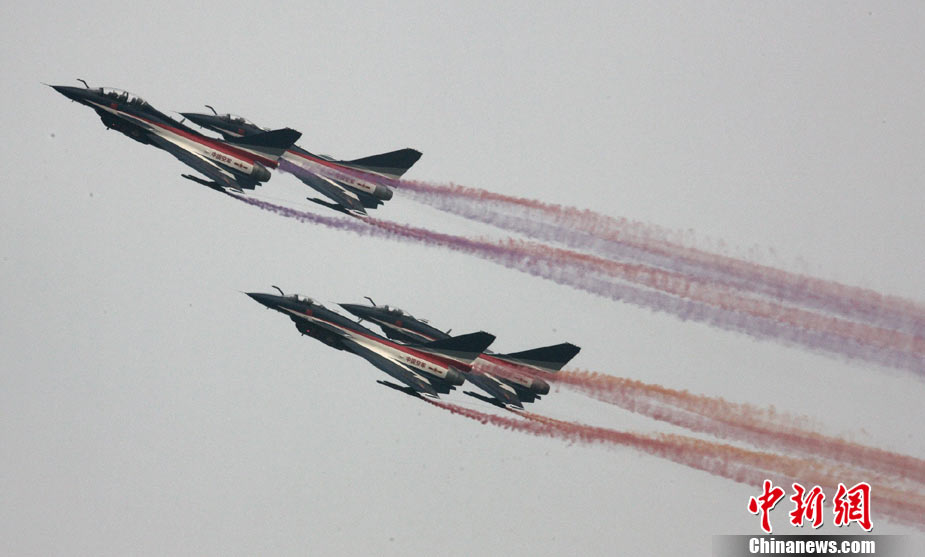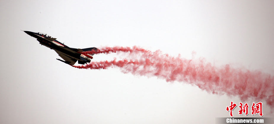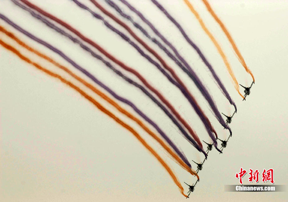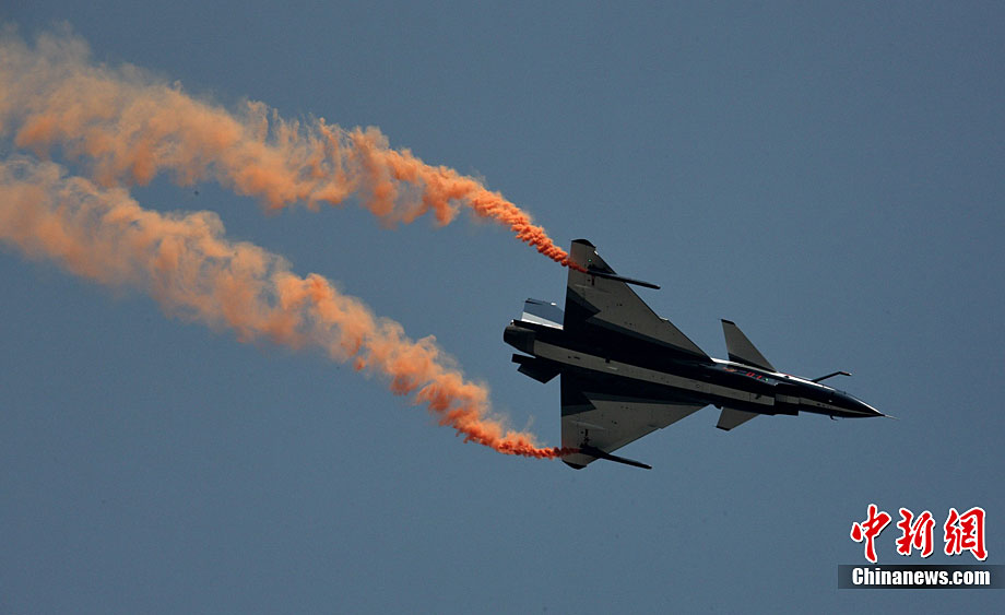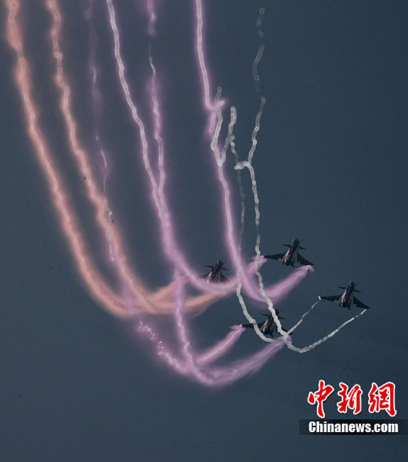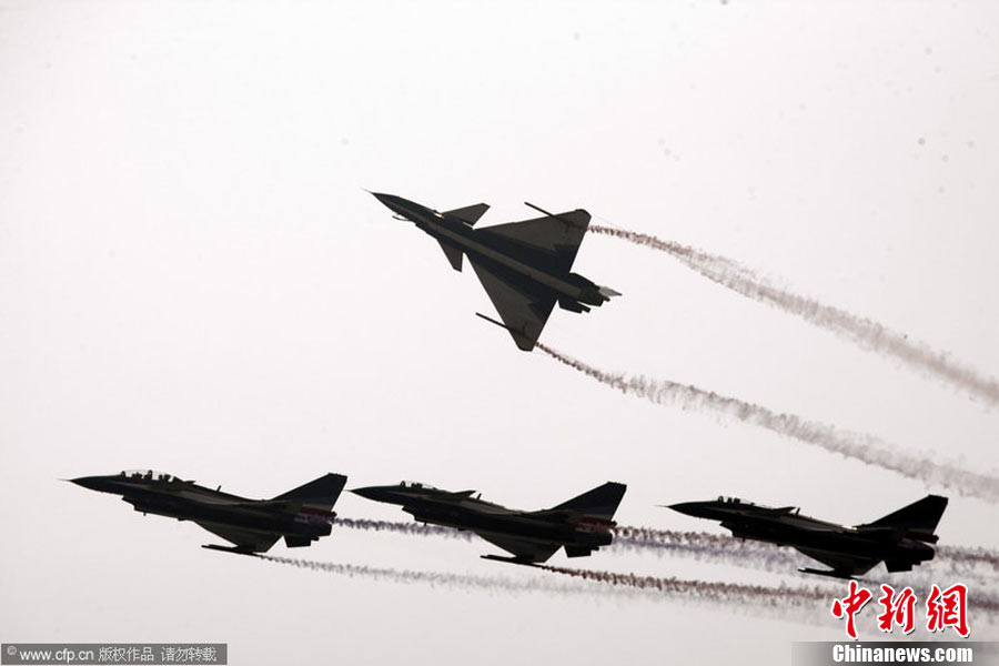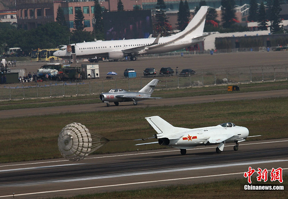 11月17日,在珠海第8屆中國國際航空航天博覽會上,中航公司組織中國獲獎(jiǎng)十佳空中乘務(wù)員,向殲10飛機(jī)總設(shè)計(jì)師、剛做完飛行表演的空軍八一飛行表演隊(duì)的空中英豪們獻(xiàn)上鮮花。圖片來源:CNSPHOTO 喬天富 攝