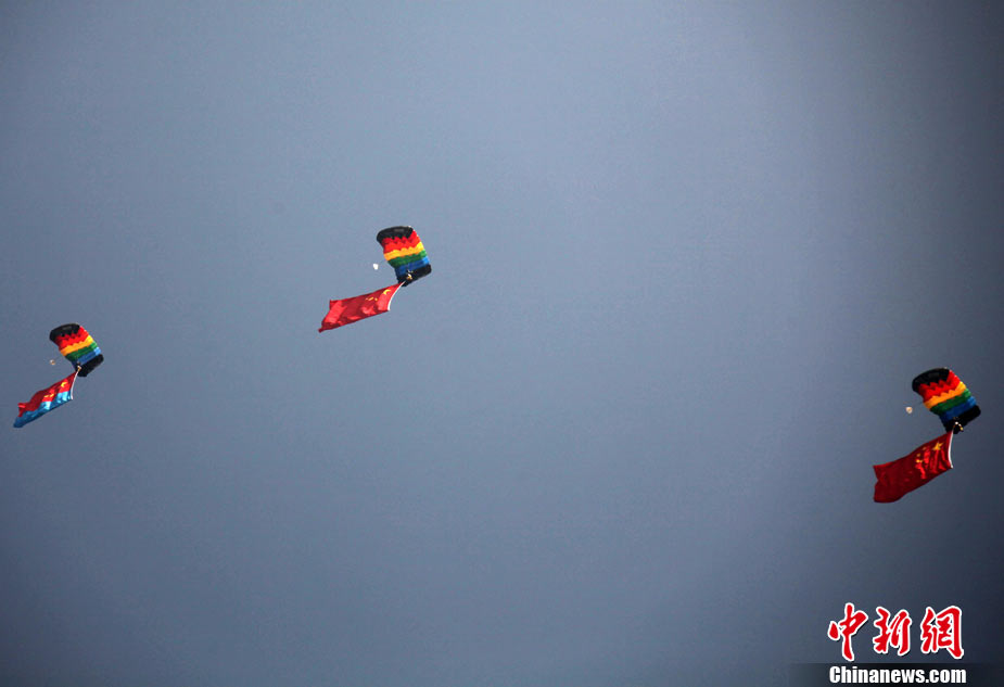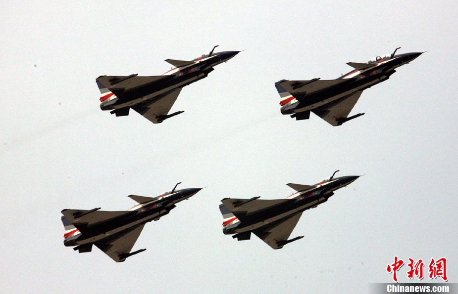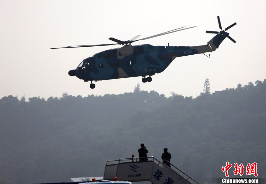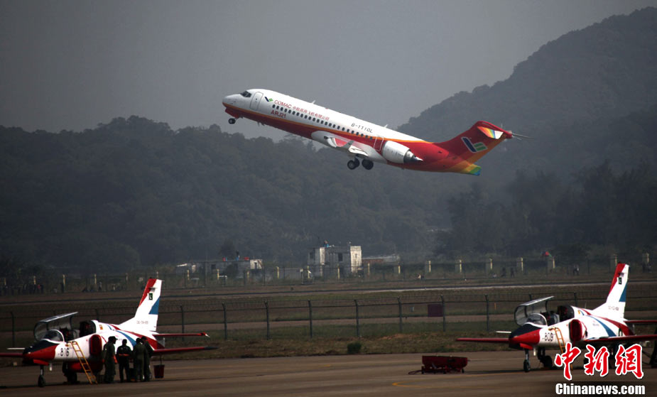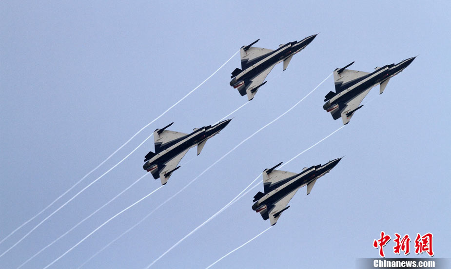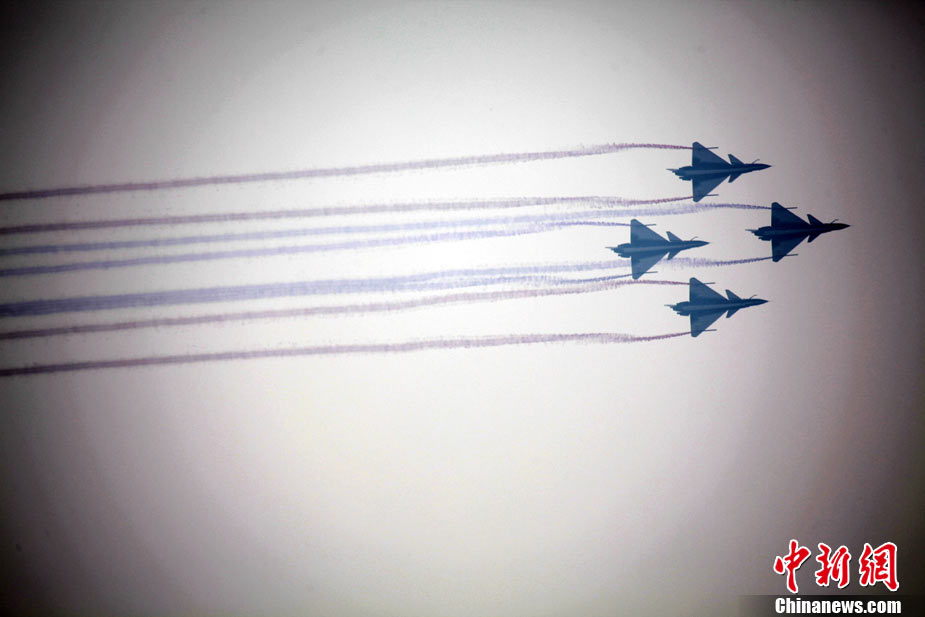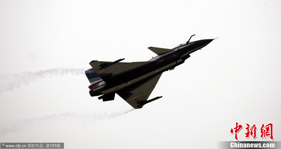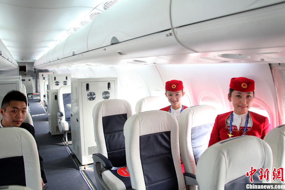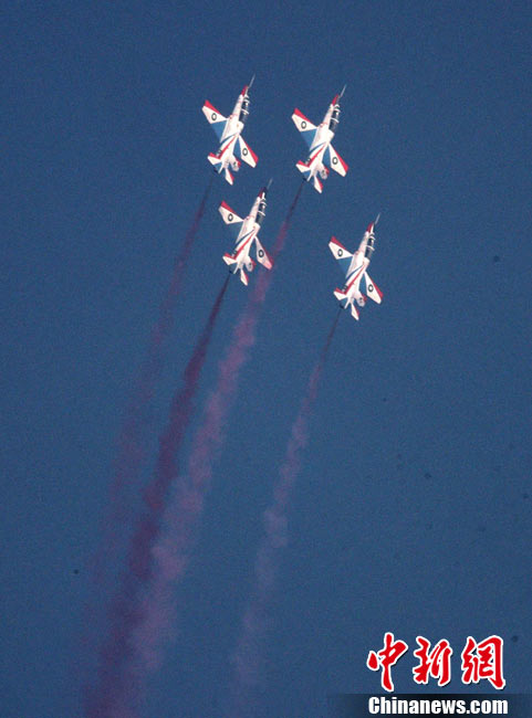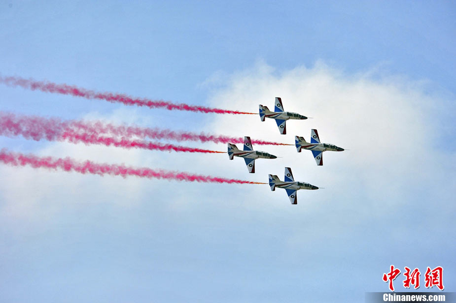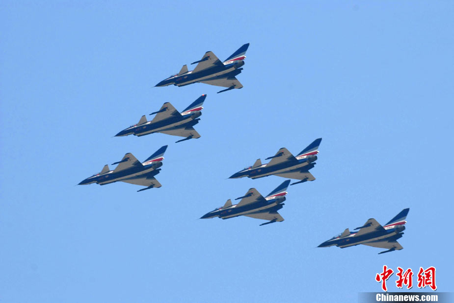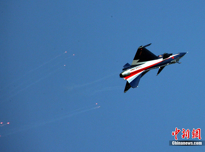 11月17日,在珠海第8屆中國國際航空航天博覽會上,中航公司組織中國獲獎(jiǎng)十佳空中乘務(wù)員,向殲10飛機(jī)總設(shè)計(jì)師、剛做完飛行表演的空軍八一飛行表演隊(duì)的空中英豪們獻(xiàn)上鮮花。圖片來源:CNSPHOTO 喬天富 攝