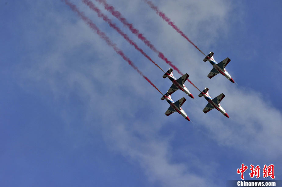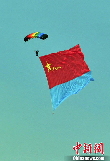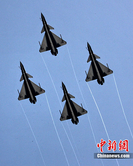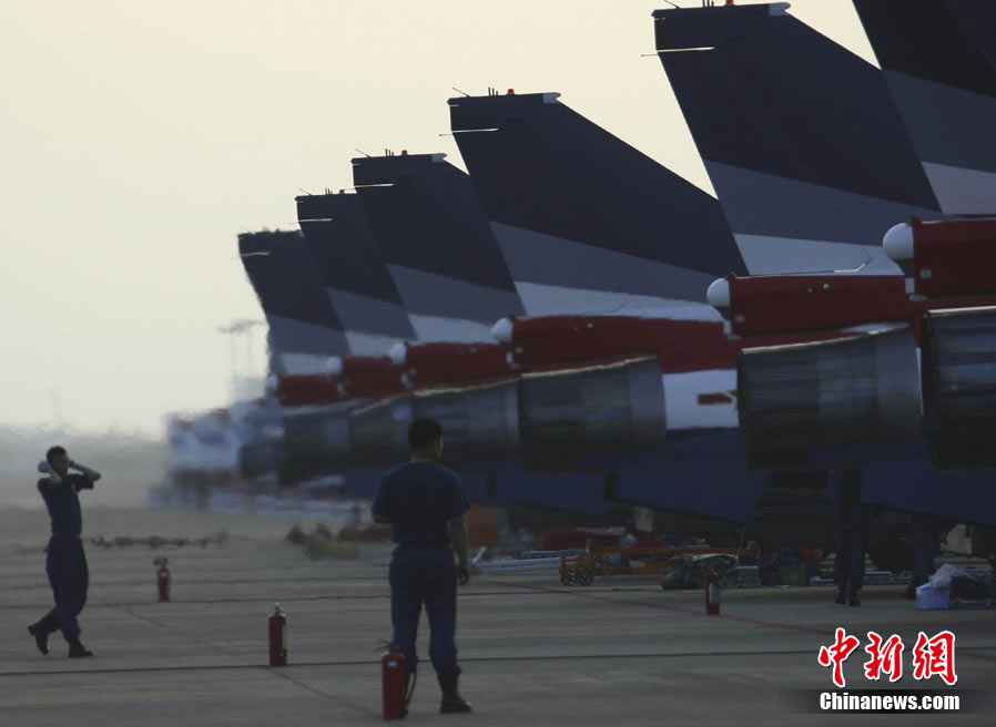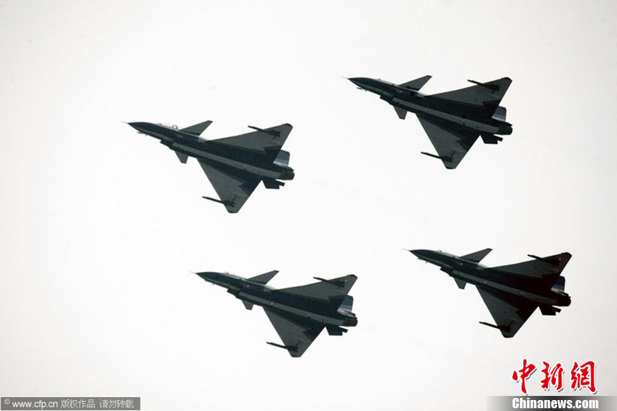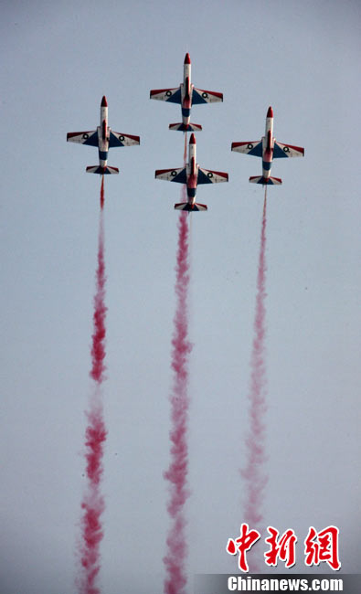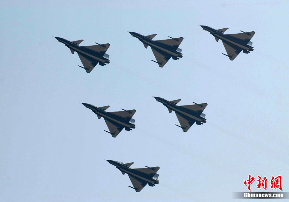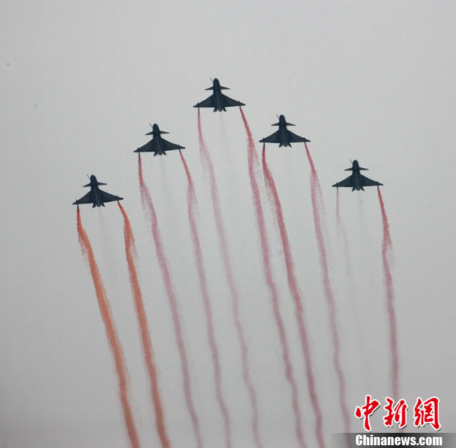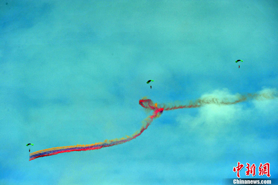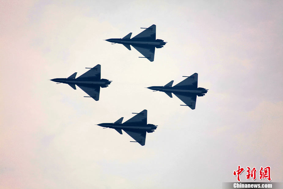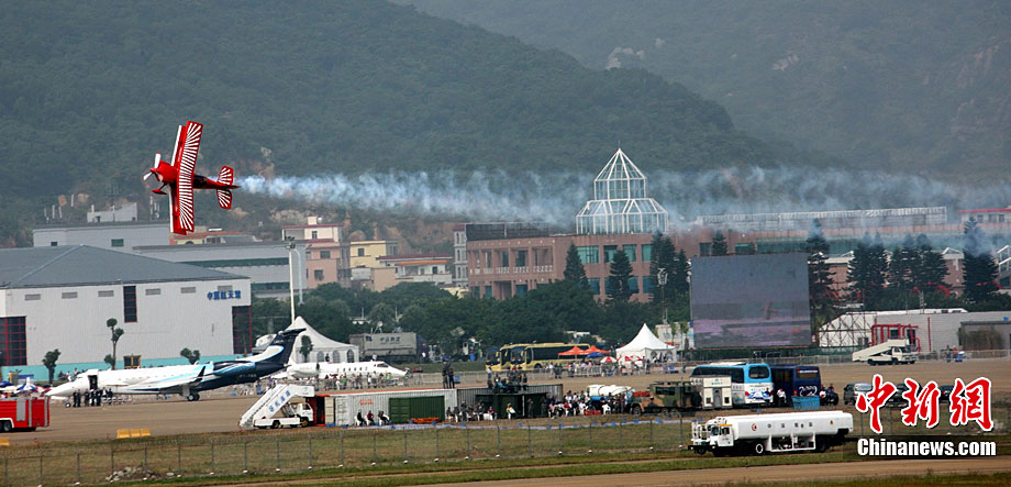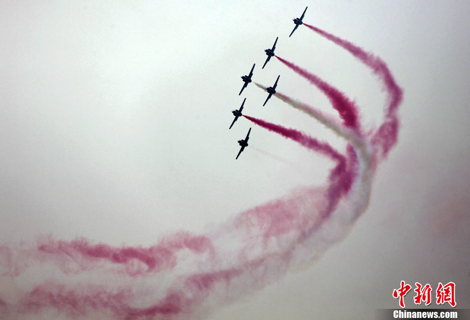 11月17日,在珠海第8屆中國國際航空航天博覽會上,中航公司組織中國獲獎(jiǎng)十佳空中乘務(wù)員,向殲10飛機(jī)總設(shè)計(jì)師、剛做完飛行表演的空軍八一飛行表演隊(duì)的空中英豪們獻(xiàn)上鮮花。圖片來源:CNSPHOTO 喬天富 攝