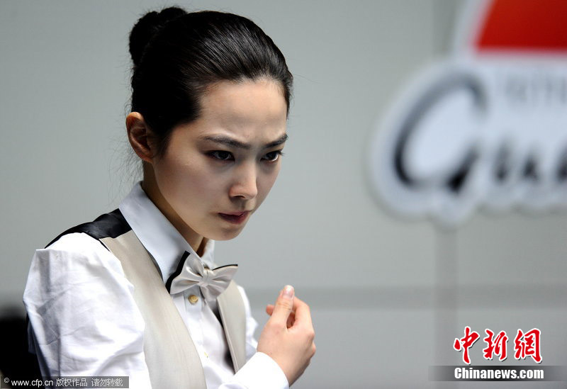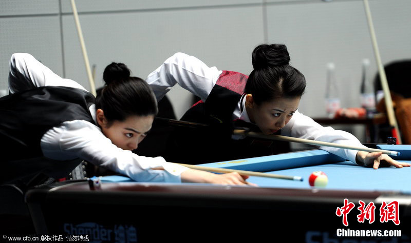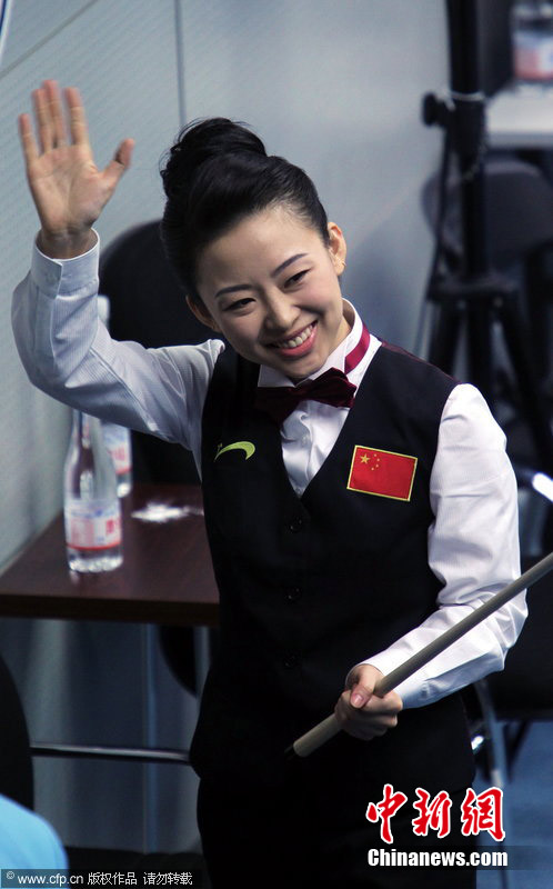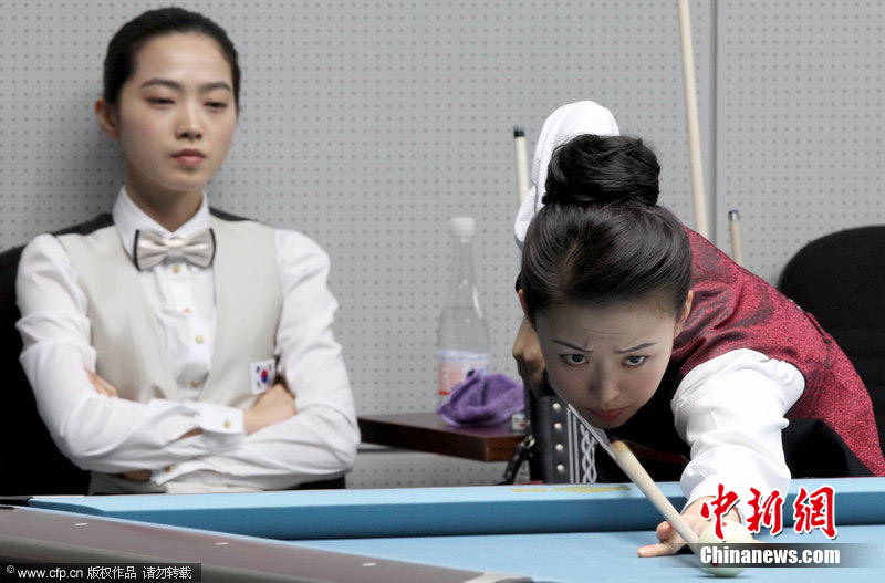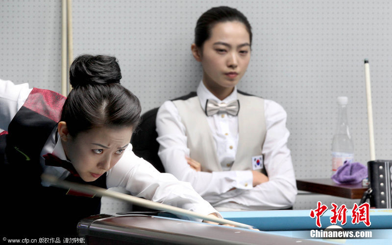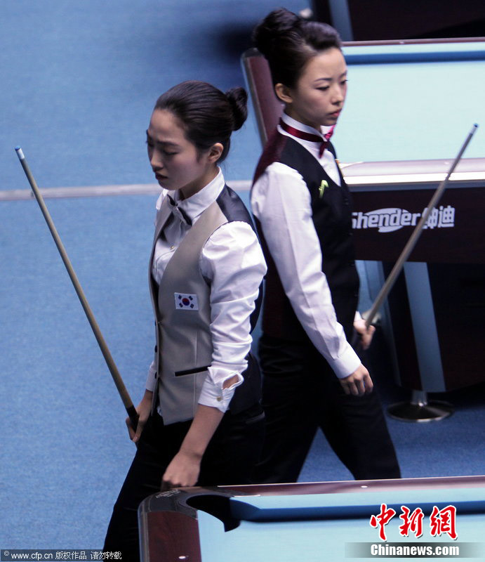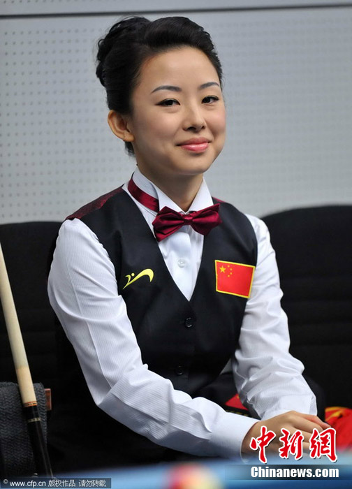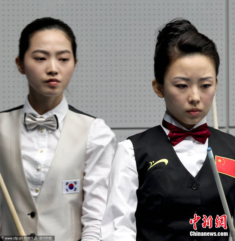 11月18日,2010廣州亞運(yùn)會(huì)女子美式9球單打1/4決賽,兩位公認(rèn)的臺(tái)壇美女展開激烈爭(zhēng)奪,最終,中國(guó)選手潘曉婷以7:6的最終比分戰(zhàn)勝韓國(guó)的車侑藍(lán)(車俞嵐)晉級(jí)下一輪。圖片來源:cfp視覺中國(guó)