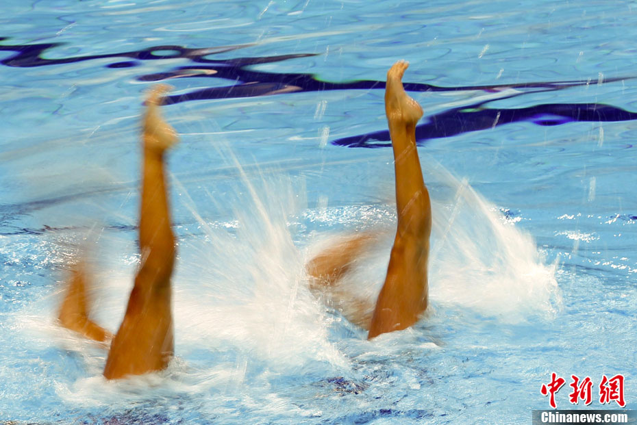 11月19日,中國(guó)花游雙人組合蔣婷婷、蔣文文亮相廣州,參加亞運(yùn)會(huì)花游比賽。中新社記者 杜洋 攝