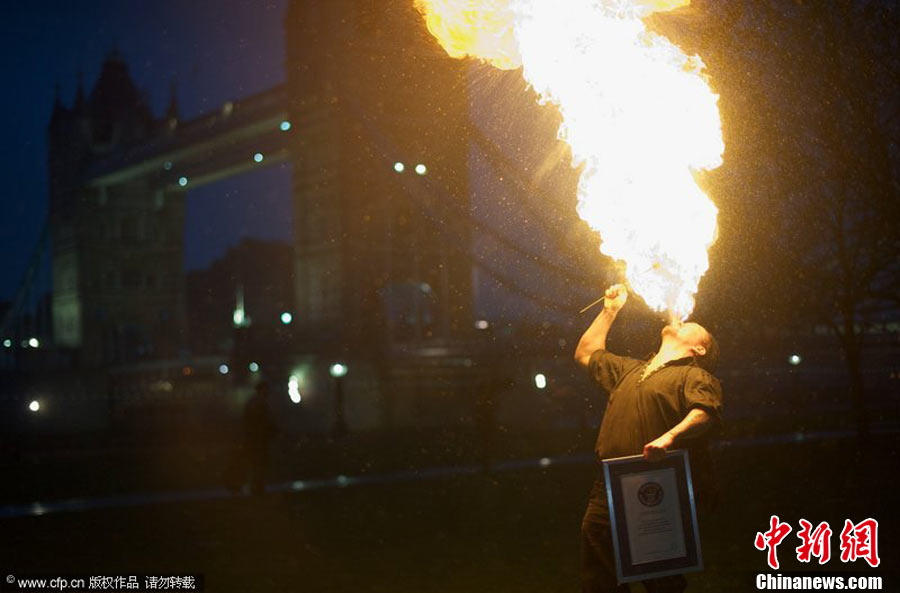 11月18日,一年一度的“吉尼斯世界紀錄日”。當日,世界各地的牛人紛紛亮相“一展身手”。圖為在英國倫敦,來自北德文郡諾瑟姆的梅林·卡多根以1分20秒的時間創(chuàng)造了一口氣在水下拋三個球最長時間的世界紀錄。圖片來源:CFP視覺中國