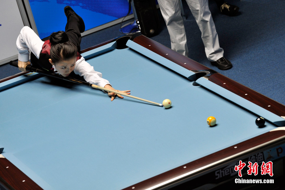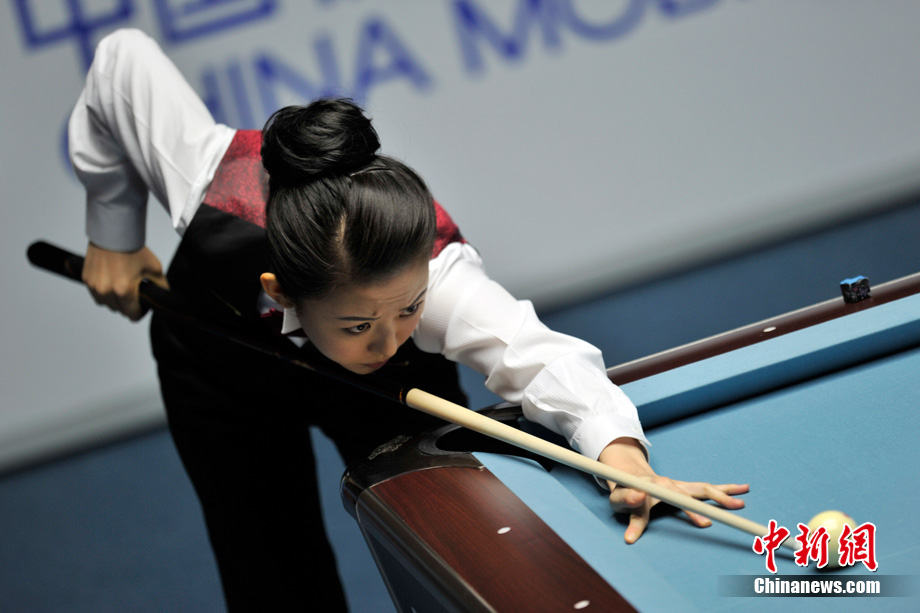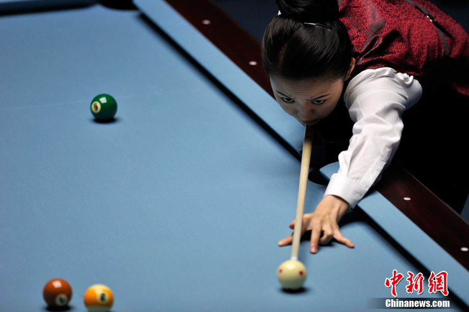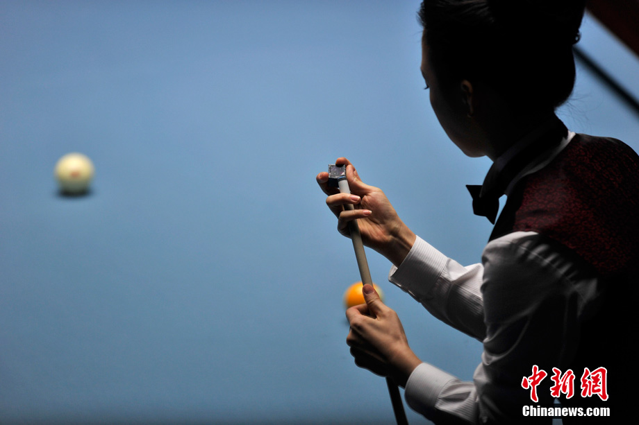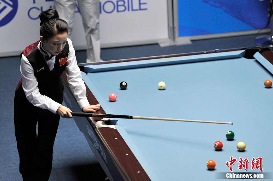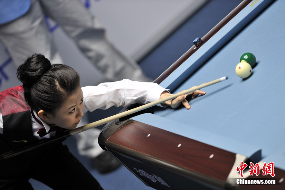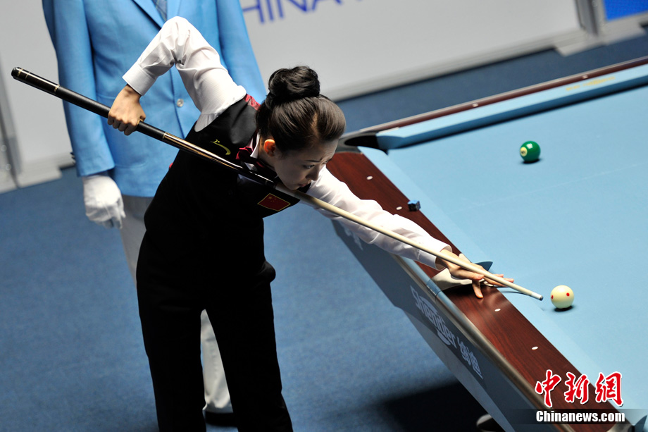 11月19日下午,廣州亞運(yùn)會(huì)女子美式9球單打決賽在亞運(yùn)城體育館上演,經(jīng)過(guò)2個(gè)多小時(shí)的激烈角逐,中國(guó)選手潘曉婷以7:5力克中華臺(tái)北選手周婕妤,最終奪冠。中新網(wǎng)記者 金碩 攝