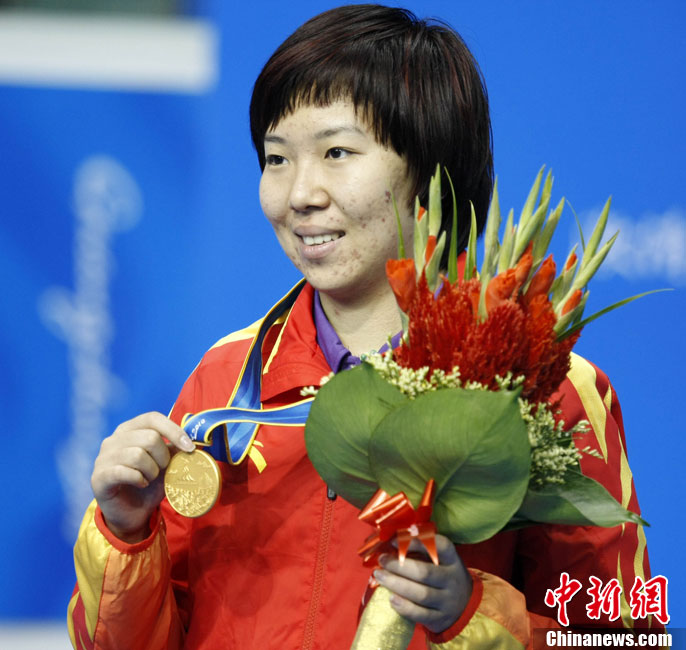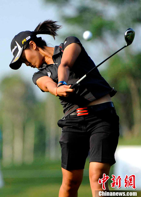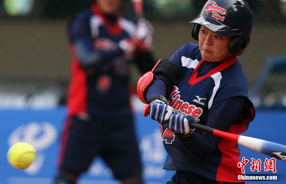 11月20日,廣州亞運(yùn)會(huì)壘球預(yù)賽第4場,中華臺(tái)北隊(duì)以9比2戰(zhàn)勝菲律賓隊(duì)。中華臺(tái)北隊(duì)員林佩君揮棒擊球。 中新社記者 湯彥俊 攝