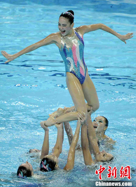 11月20日,佛山,2010亞運(yùn)會(huì)花樣游泳集體技術(shù)自選。 Adam Pretty 圖片來源:CFP視覺中國(guó)