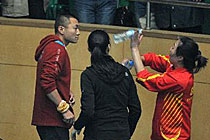 11月21日晚,2010年廣州亞運(yùn)會(huì)天河體育館羽毛球賽場(chǎng)舉行男子單打決賽,中國隊(duì)的林丹對(duì)陣馬來西亞的李宗偉。最終,林丹2-1戰(zhàn)勝李宗偉奪冠。中新社記者 富田 攝