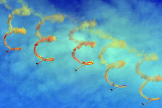 11月21日,為期六天的第八屆中國航展在珠海圓滿落幕。當天,巴基斯坦空軍“雄獅”飛行表演隊駕駛K8教練機進行了兩場精彩的編隊飛行。中新社發(fā) 張申生 攝 圖片來源:CNSPHOTO