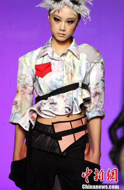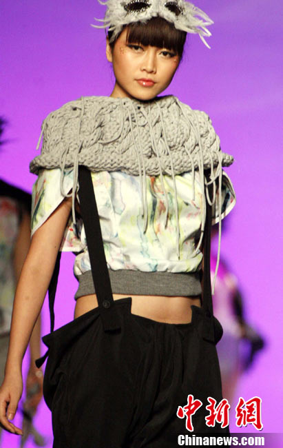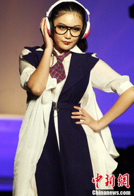 11月22日,正在廣東虎門舉行的第15屆中國(虎門)國際服裝交易會上,推出學(xué)生設(shè)計大賽暨2011春夏流行發(fā)布會。圖為甜美“學(xué)院風(fēng)”服飾作品。中新社記者 錢興強(qiáng) 攝