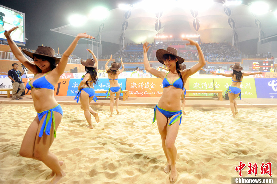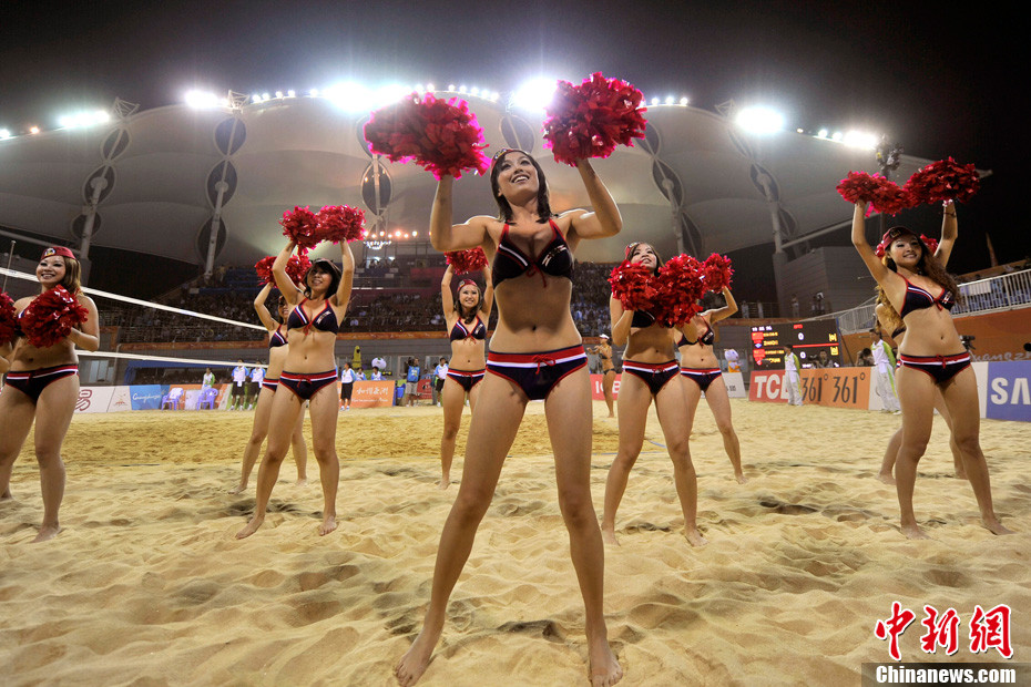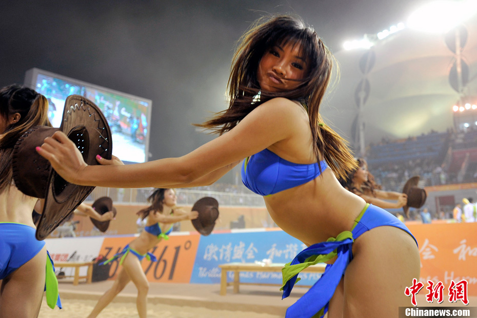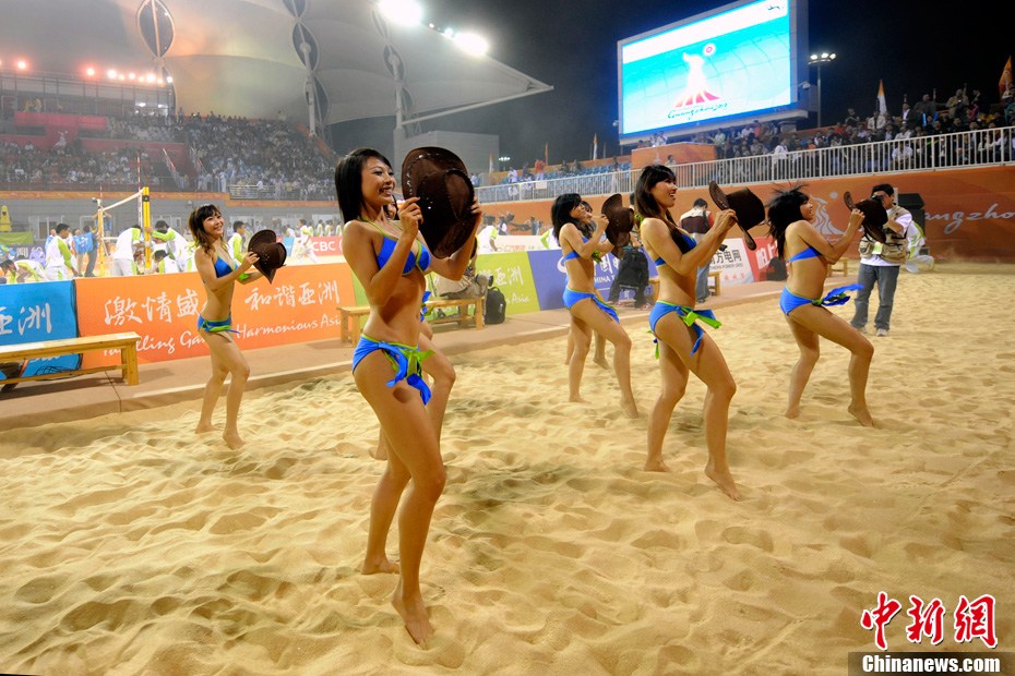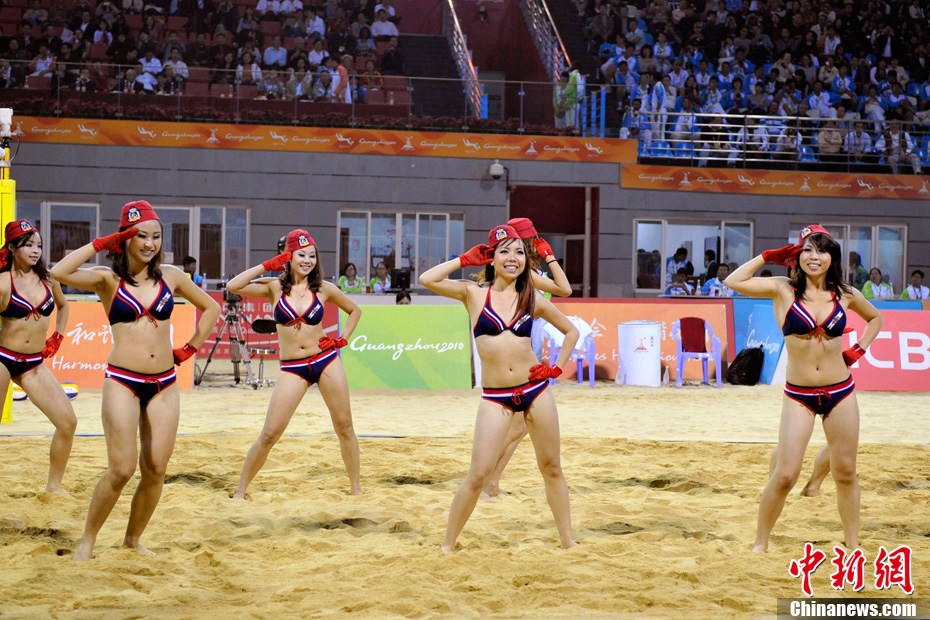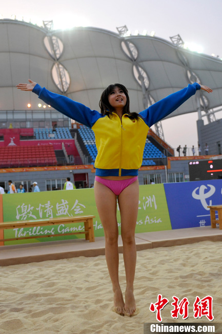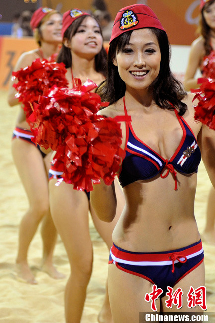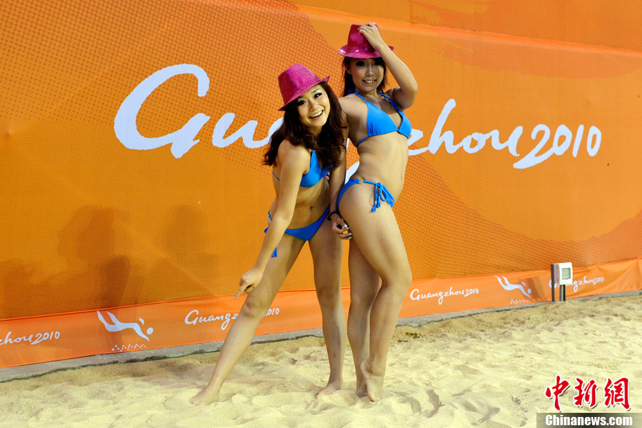 2010廣州亞運(yùn)會(huì)賽場,激情四溢的沙排寶貝讓人印象深刻,身著比基尼凸顯傲人身材,火爆辣舞令賽場氣氛高潮迭起。賽場外的她們同樣精彩,總是給人帶來一種青春的律動(dòng)。中新網(wǎng)記者 金碩 攝