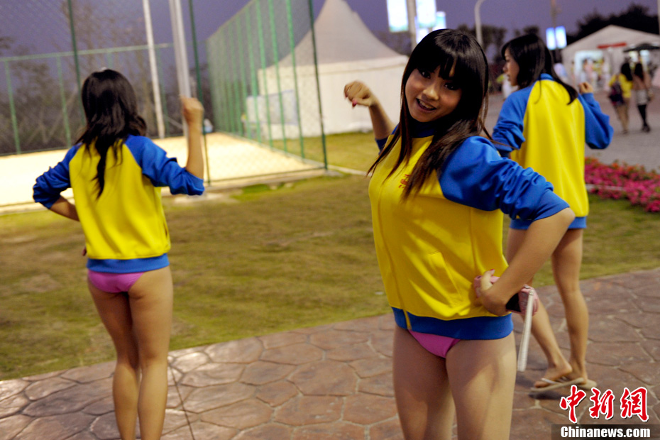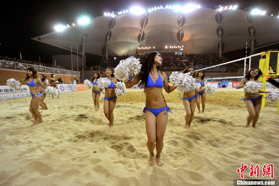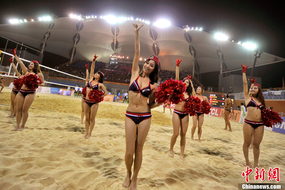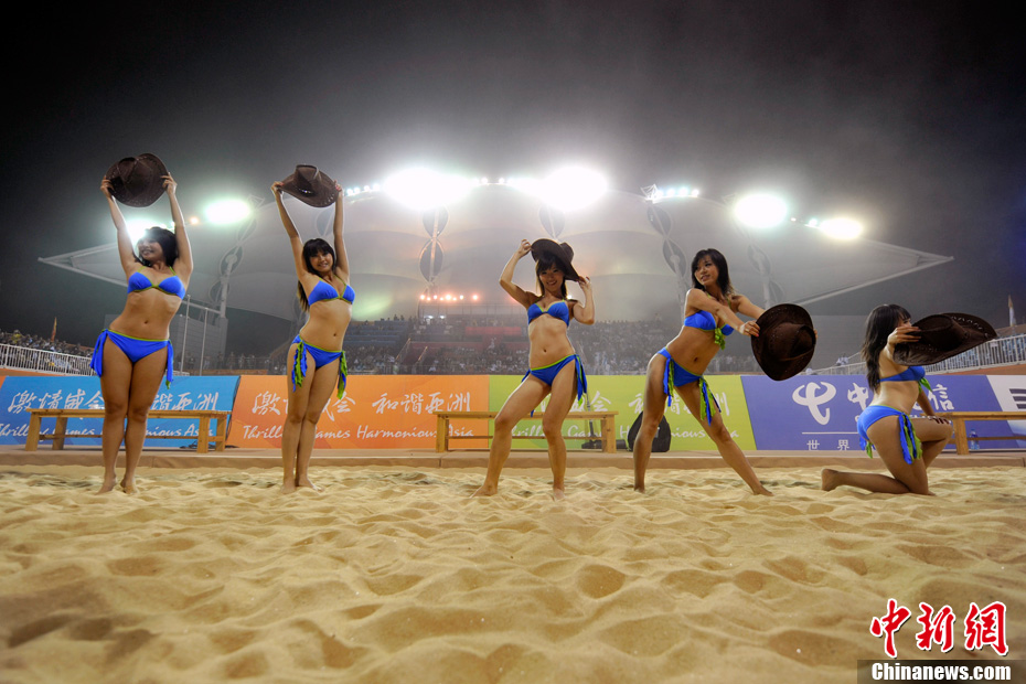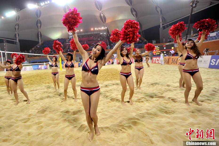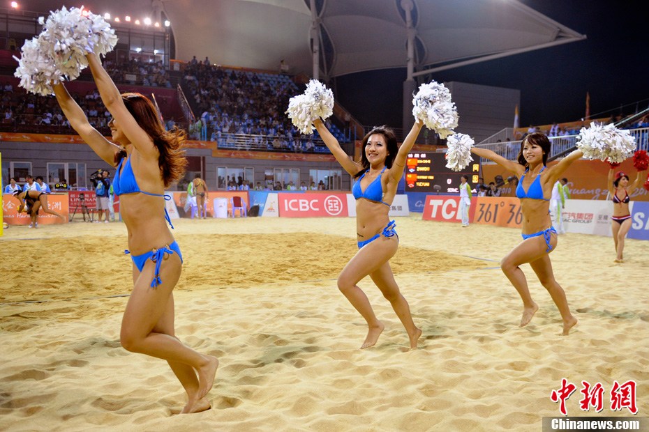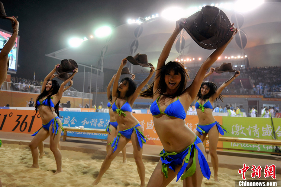 2010廣州亞運(yùn)會(huì)賽場,激情四溢的沙排寶貝讓人印象深刻,身著比基尼凸顯傲人身材,火爆辣舞令賽場氣氛高潮迭起。賽場外的她們同樣精彩,總是給人帶來一種青春的律動(dòng)。中新網(wǎng)記者 金碩 攝