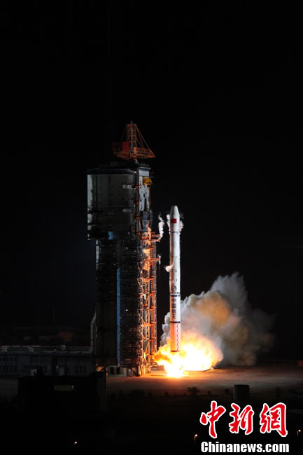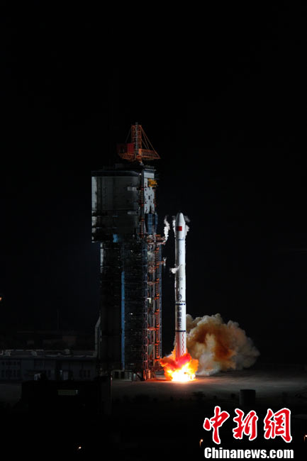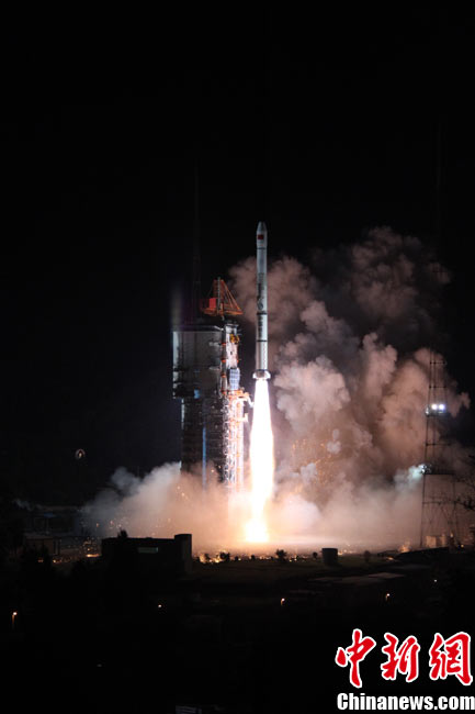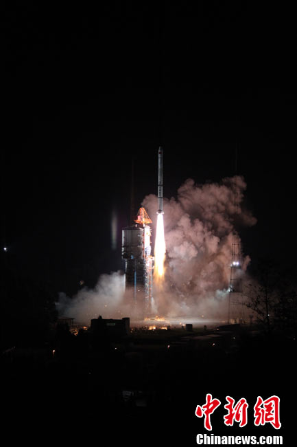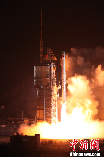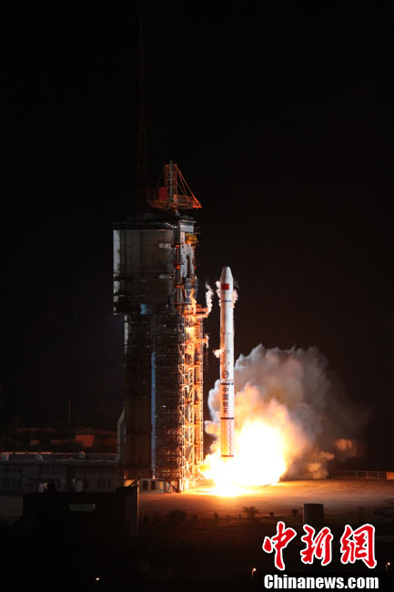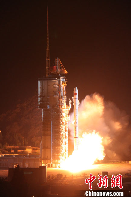 北京時間25日0時9分,中國在西昌衛(wèi)星發(fā)射中心用“長征三號甲”運載火箭,將“中星-20A”通信廣播衛(wèi)星成功送入太空預(yù)定軌道。中新網(wǎng)發(fā) 王玉磊 攝