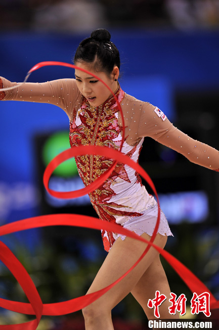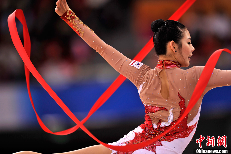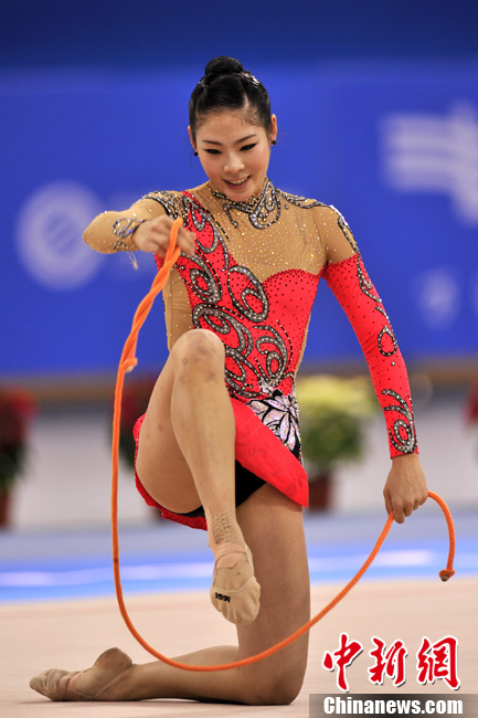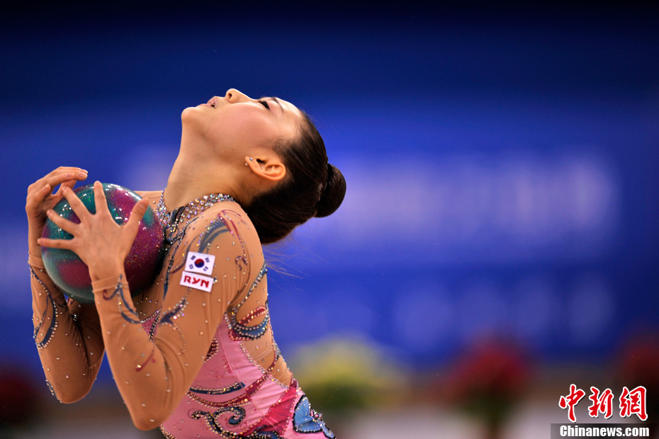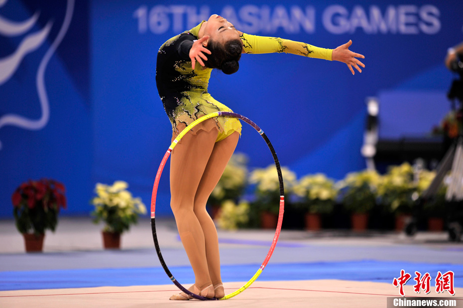 11月25日,亞運(yùn)會(huì)上最“唯美”的項(xiàng)目藝術(shù)體操正式開(kāi)賽,90后的小選手們纖細(xì)曼妙的身材、柔美而富有韻律的動(dòng)作成為亞運(yùn)賽場(chǎng)最美的風(fēng)景線。中新網(wǎng)記者 金碩 攝