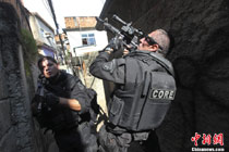 11月24日,巴西里約熱內(nèi)盧發(fā)生激烈槍戰(zhàn)。巴西當(dāng)?shù)氐呢湺炯瘓F(tuán)成員在街頭燒毀轎車和公車,并與警方發(fā)生交火,13名販毒分子被擊斃。