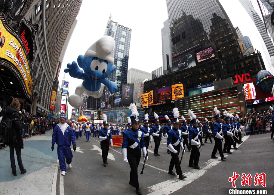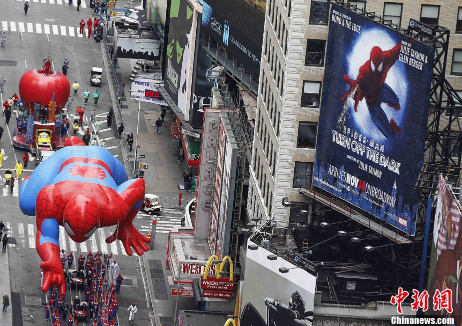 一年一度的紐約梅西感恩節(jié)大游行是美國最重要的節(jié)日游行之一,今年更是吸引了近300萬美國民眾走上曼哈頓街頭觀看,與游行隊伍共同狂歡。中新社發(fā) 魏晞 攝