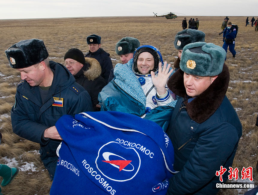 俄羅斯地面飛行控制中心當(dāng)?shù)貢r(shí)間11月26日宣布,國際空間站的3名宇航員已于當(dāng)日清晨乘俄“聯(lián)盟TMA-19”載人飛船安全返回地球。在國際空間站內(nèi)工作了162天的俄羅斯宇航員尤爾齊欣、美國宇航員維洛克和沃克爾乘坐“聯(lián)盟TMA-19”載人飛船,平安降落在哈薩克斯坦阿爾卡雷克市以北的草原上,3名宇航員目前狀態(tài)良好。
