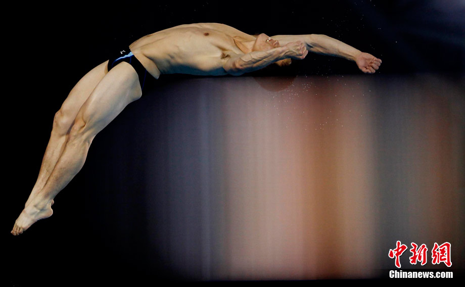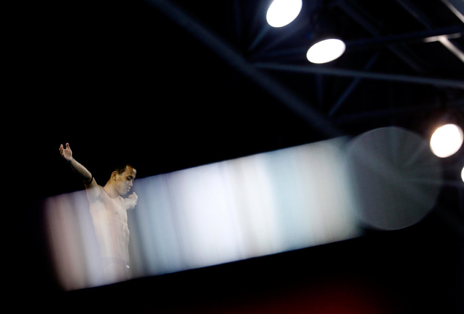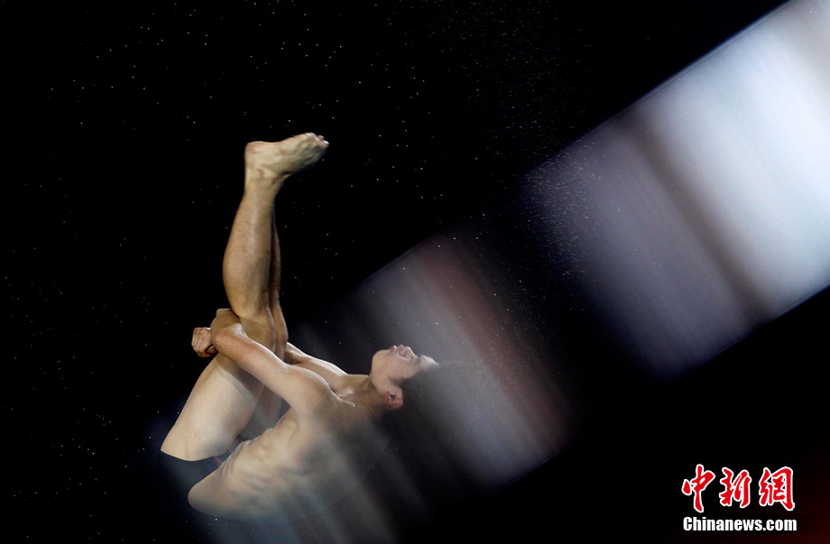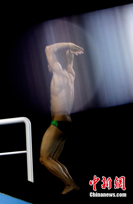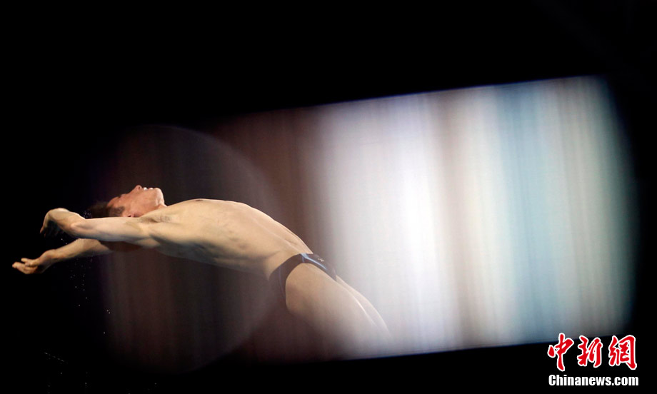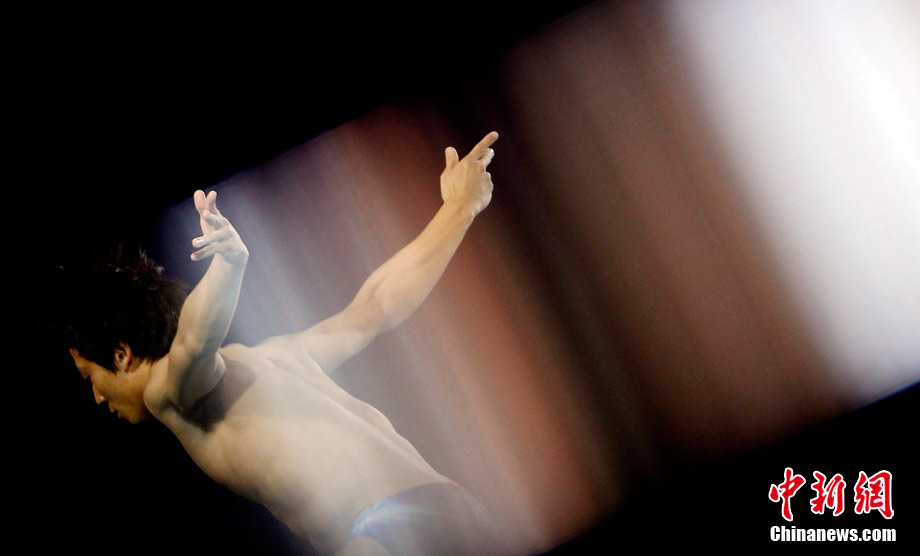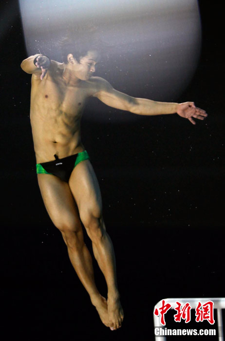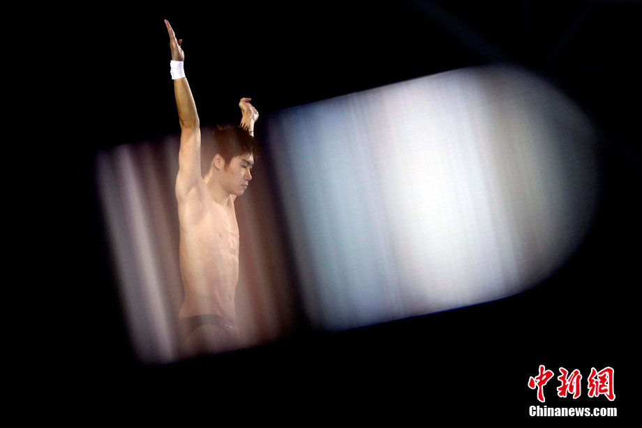 11月26日,廣州亞運會,男子10米跳臺,一道神奇的光暈讓運動員猶如“天神”。中新社記者 杜洋 攝