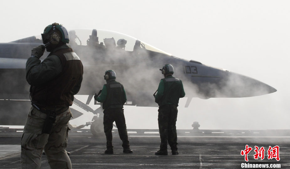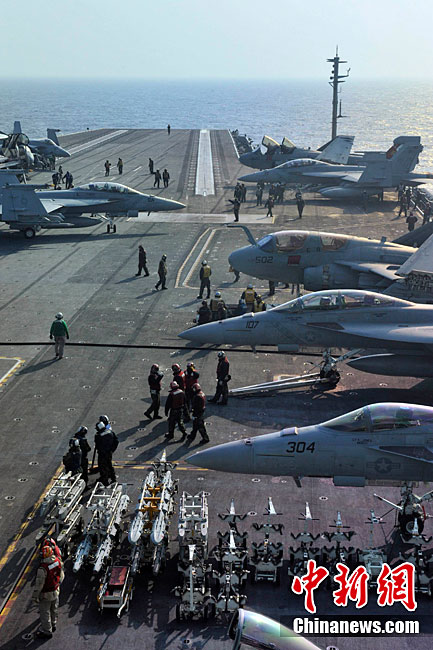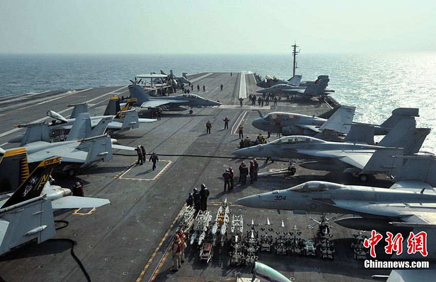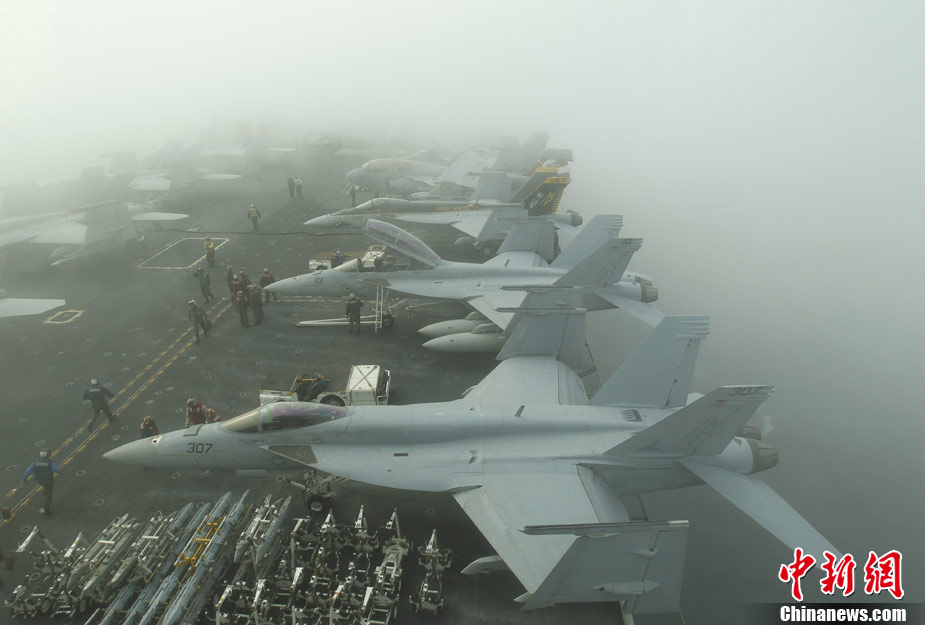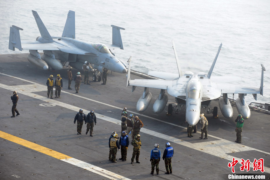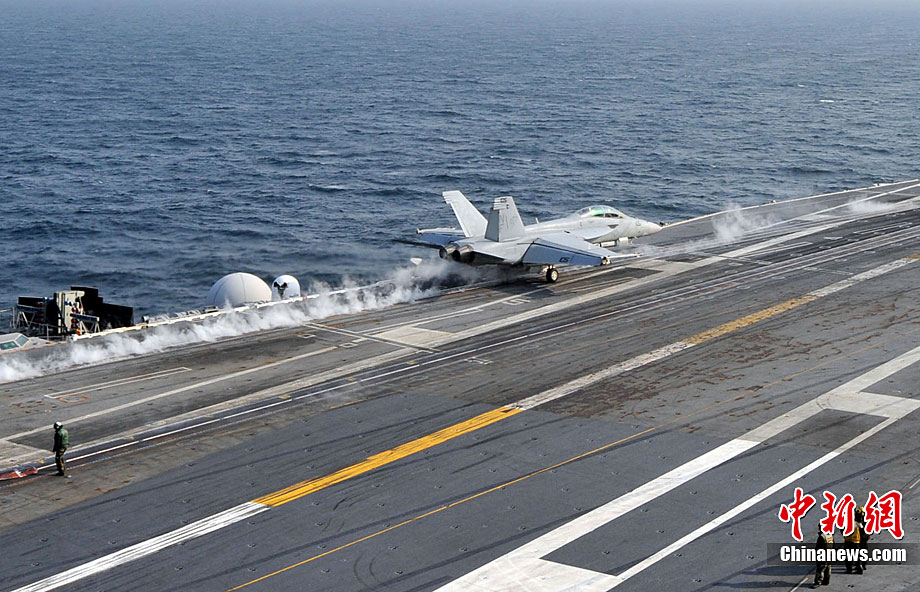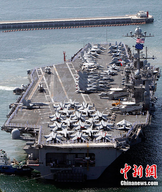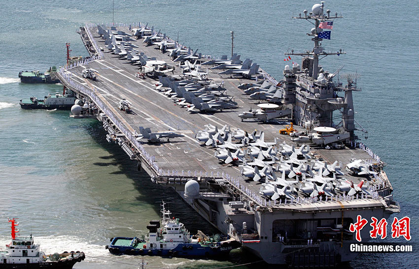 11月28日,韓美聯(lián)合軍事演習(xí)在黃海海域舉行。美軍派出“喬治·華盛頓”號航母、9600噸級巡洋艦及9750噸級驅(qū)逐艦參加演習(xí)。韓軍也投入7600噸級“世宗大王”艦、兩艘4500噸級驅(qū)逐艦以及巡邏艦、護航艦、戰(zhàn)斗支援艦和反潛飛機等參加演習(xí)。圖為11月17日,美國“喬治·華頓頓”號航母在日本沖繩附近演習(xí)。