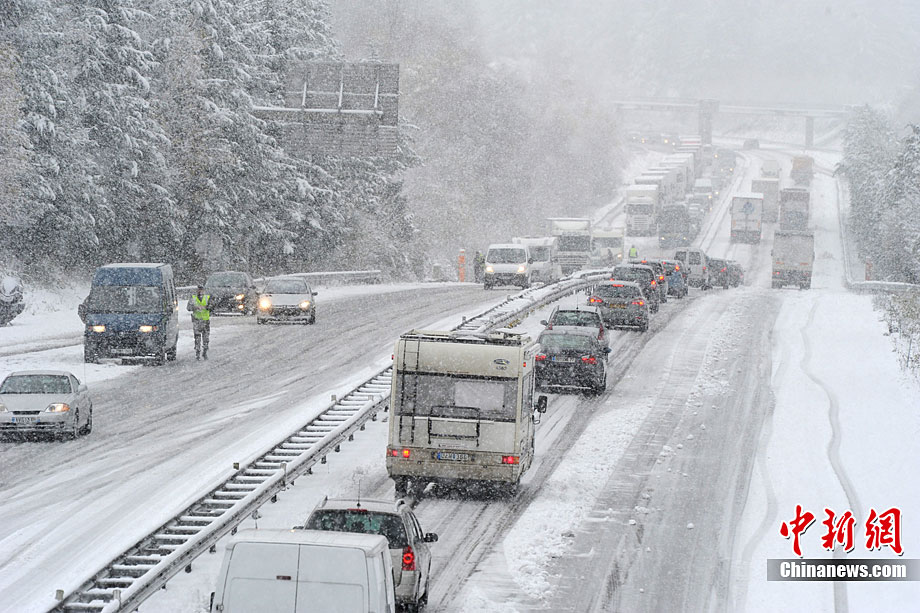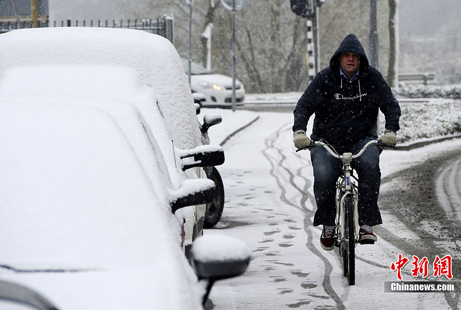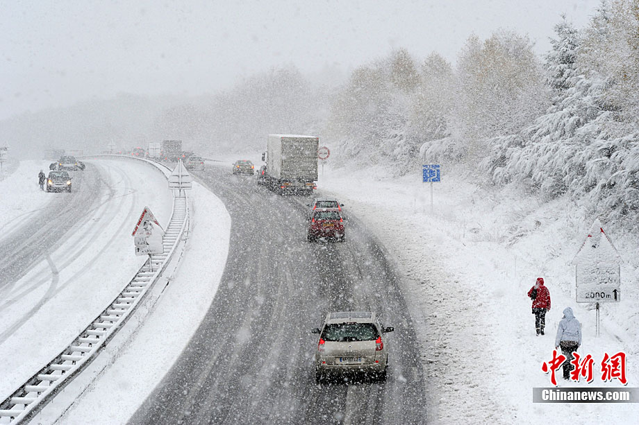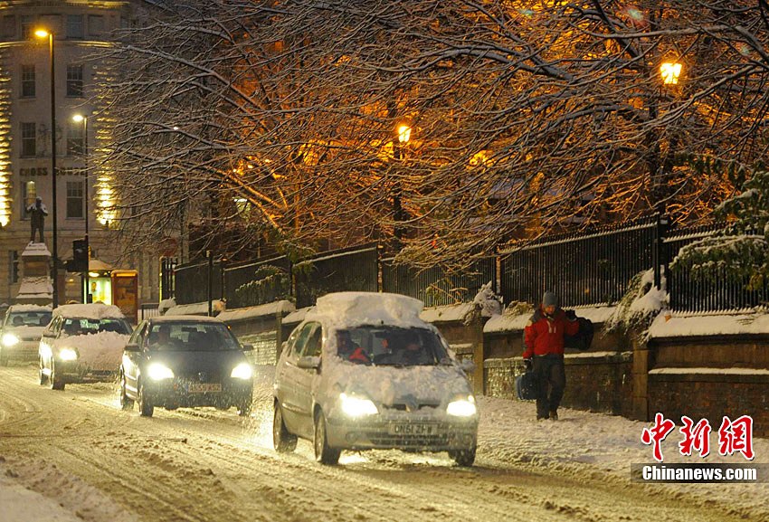歐洲廣大地區(qū)受到嚴寒天氣侵襲,其中英國提早降下今冬第一場雪,是17年來最大的初雪,部分地區(qū)更刮起暴風雪,最低氣溫達零下17攝氏度,居民生活和交通大受影響。法國、比利時、荷蘭、丹麥、德國、波蘭以至白俄羅斯均出現(xiàn)暴風雪,預計西班牙北部也會下雪。圖為11月29日,英格蘭北部紐卡斯爾,汽車行駛在大雪覆蓋的道路上。
