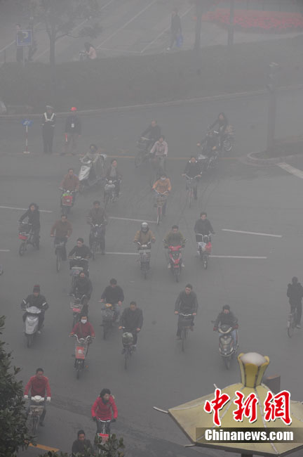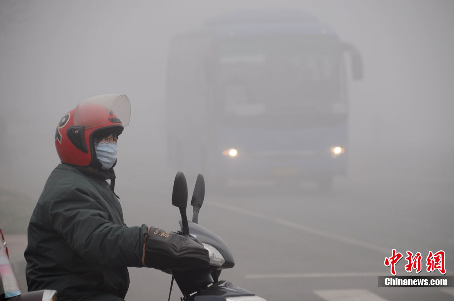 11月30日,山東濱州出現(xiàn)大霧天氣,濱州市氣象臺發(fā)布大霧黃色預(yù)警信號。張濱 攝 圖片來源:CNSPHOTO