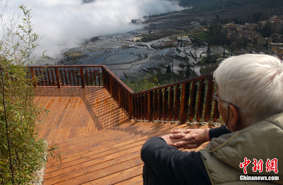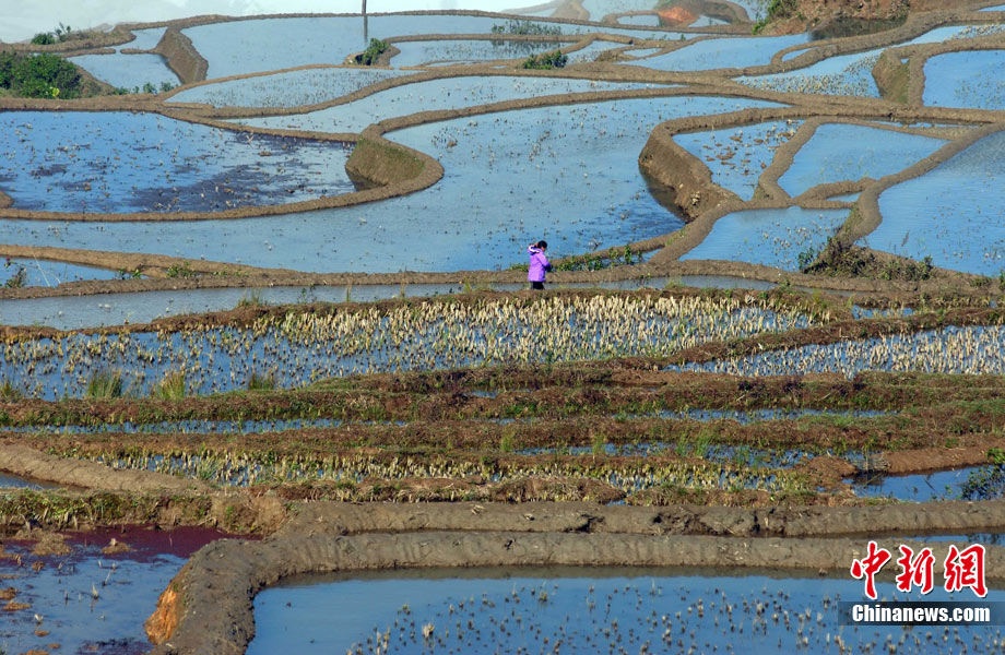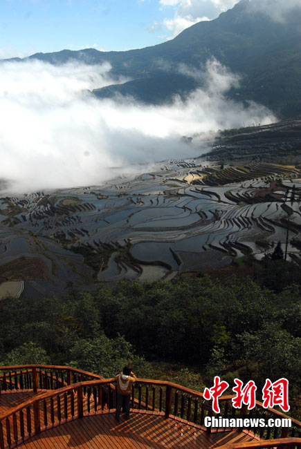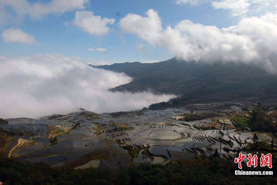 11月30日,被譽為世界最壯觀的云南元陽哈尼梯田迎來了最佳觀景時機,萬畝梯田氣勢磅礴,讓聞名而來的游客感嘆大自然的鬼斧神工。據(jù)了解,每年的11月底至次年的2月梯田中已經(jīng)放水備耕而田中無稻谷,是最佳的拍攝觀景時間。中新社發(fā) 任東 攝