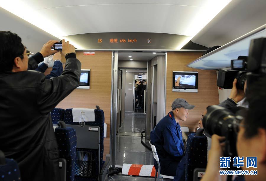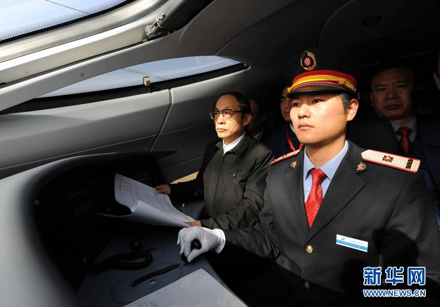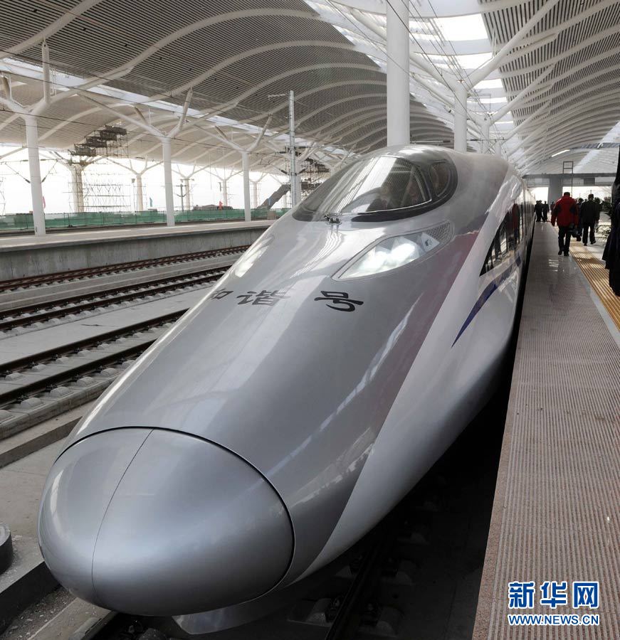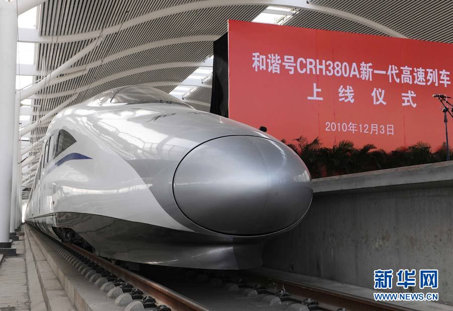 12月3日,將進(jìn)行綜合試驗(yàn)的“和諧號(hào)”CRH380A新一代高速動(dòng)車組停在京滬高鐵徐州東站站臺(tái)。當(dāng)日上午11時(shí)左右,中國新一代高速動(dòng)車組將在京滬高鐵先導(dǎo)段(棗莊至蚌埠)展開綜合試驗(yàn),預(yù)計(jì)最高時(shí)速將大大超過此前416.6公里的紀(jì)錄。 陳樹根 攝 圖片來源:新華網(wǎng)