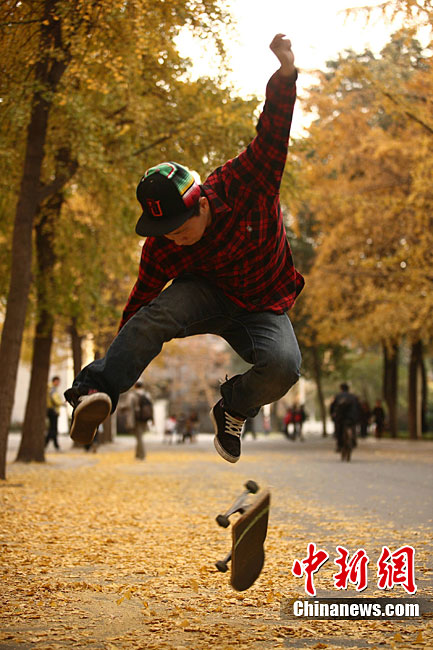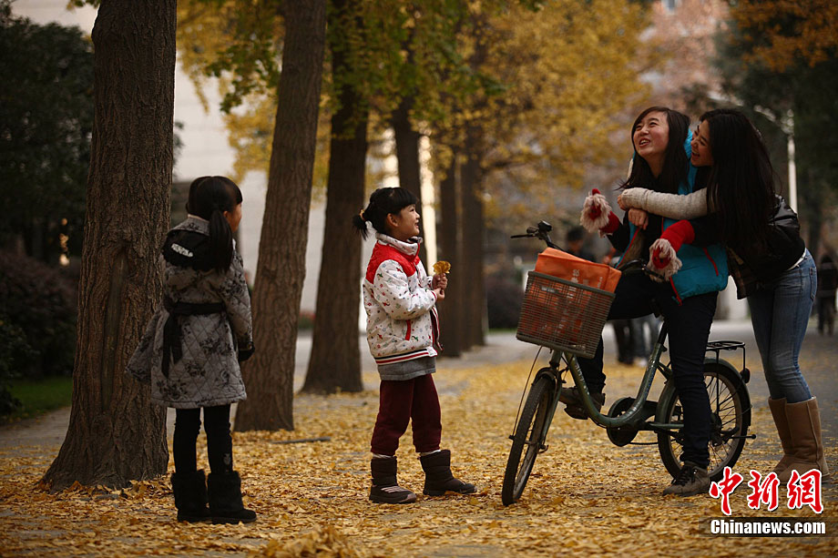 銀杏樹作為成都市的市樹,每年11月底到12月初是市民觀賞銀杏的最佳時(shí)期,面對市民發(fā)出的“保留銀杏落葉景觀”呼聲,成都市環(huán)衛(wèi)部門于2009年對部分街道的銀杏落葉首次采取“只撿不掃”的措施,2010年,成都環(huán)衛(wèi)部門繼續(xù)采用了這一人性化措施,將銀杏落葉景觀長時(shí)間留給市民。中新社發(fā) 張浪 攝
