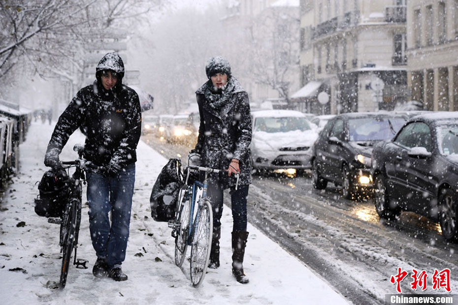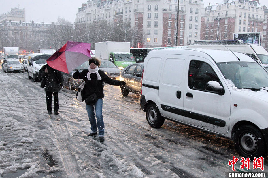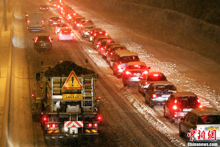 當(dāng)?shù)貢r間12月8日,法國首都巴黎及其周邊地區(qū)再度出現(xiàn)強(qiáng)降雪,根據(jù)法國氣象部門公布的數(shù)據(jù),巴黎局部地區(qū)降雪量達(dá)到11厘米,為歷史較高水平。此次降雪造成巴黎及周邊地區(qū)交通擁堵,高速公路的車龍延綿四百二十公里,市中心巴士一度停駛,旅游景點(diǎn)巴黎鐵塔也要關(guān)閉,TGV高速列車也要限速行駛,戴高樂及奧利兩大機(jī)場關(guān)閉,數(shù)百班機(jī)取消。