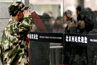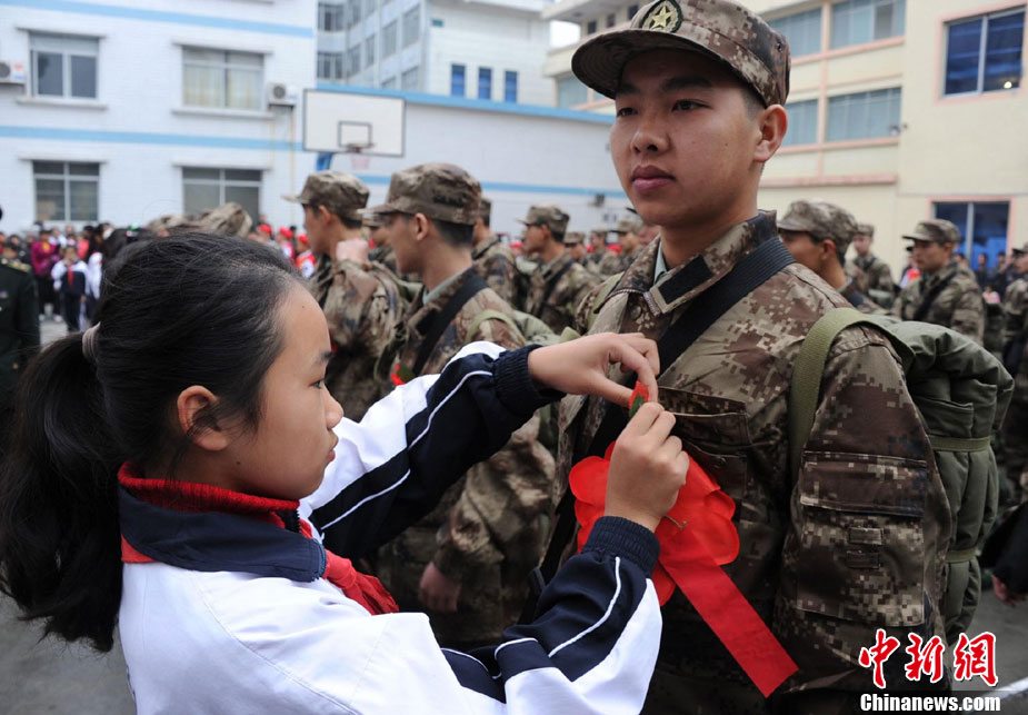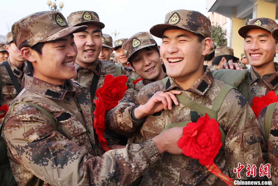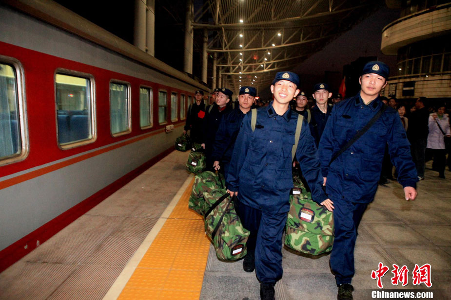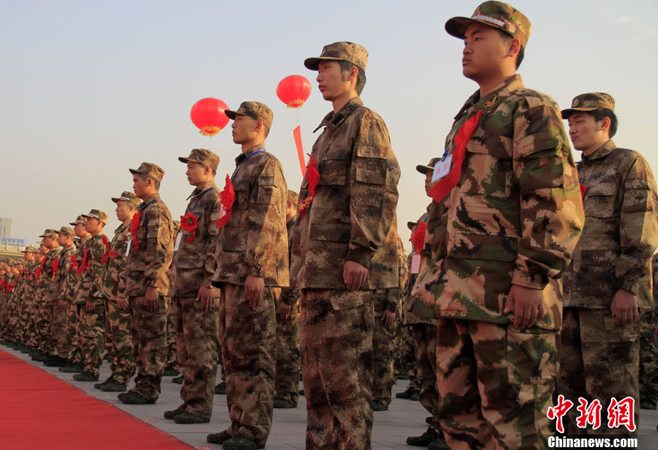 12月10日,北京市在西客站舉行隆重的歡送首批新兵儀式。來自東城、西城、朝陽、海淀等14個區(qū)的500名新戰(zhàn)士身穿軍裝,胸帶紅花,即將奔赴四川、陜西、湖北、河北等地軍營。北京市征召的新兵中,高校畢業(yè)生和在校生超過了三分之一。