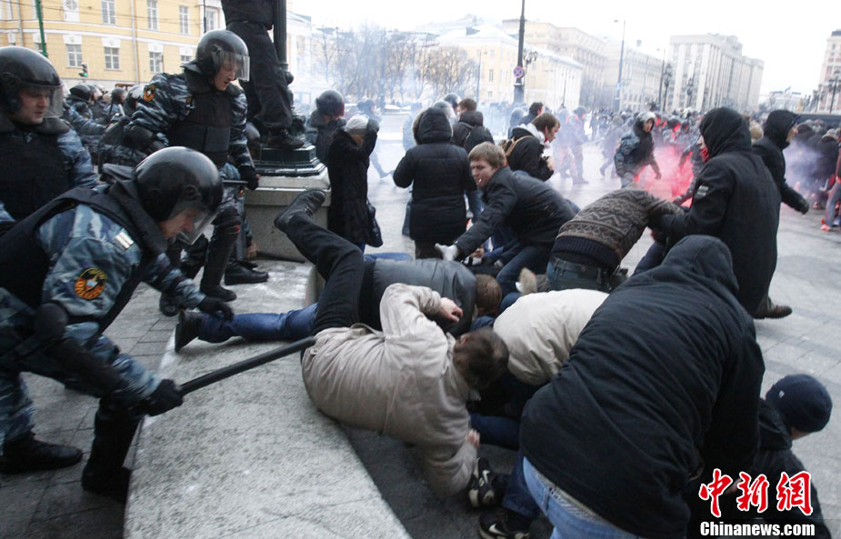 12月11日,俄羅斯首都莫斯科發(fā)生大規(guī)模球迷騷亂。 騷亂直接原因是此前于12月6日發(fā)生在市內(nèi)的一起斯巴達(dá)克俱樂部球迷與高加索人之間的群毆事件。事件導(dǎo)致一名斯巴達(dá)克俱樂部球迷死亡,11日中午,一些球迷聚集到莫斯科市中心馬涅什廣場,聲稱為死亡球迷舉行悼念儀式,從而最終引發(fā)了目前這場有多達(dá)5萬名球迷參與的騷亂。