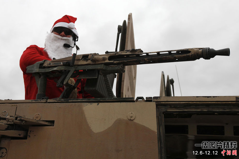 12月6日(周一),一名身著圣誕老人服裝的德國士兵乘坐在裝甲車上前往阿富汗昆都士執(zhí)行任務(wù)。