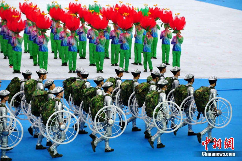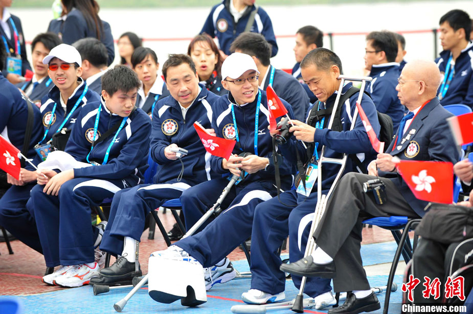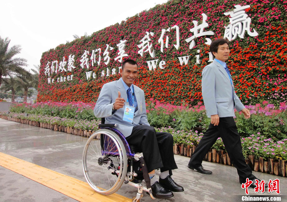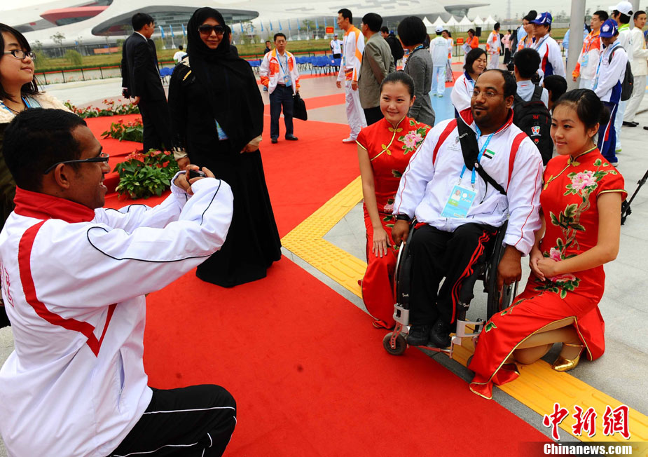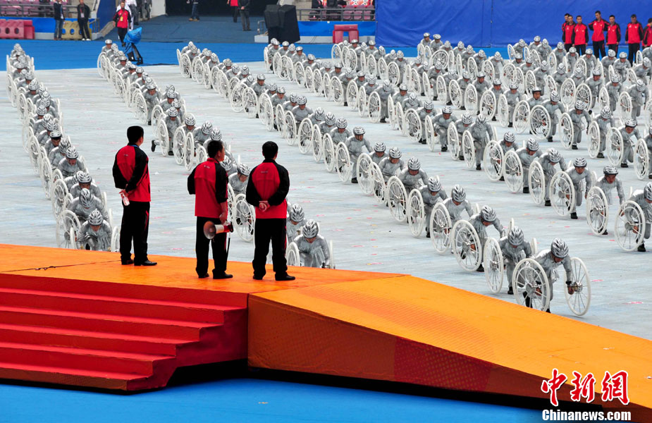 廣州2010年亞洲殘疾人運動會于12月12日晚開幕,安保、志愿者、演員都已準備就緒,開幕式進入倒計時。 中新社記者 陳文 攝