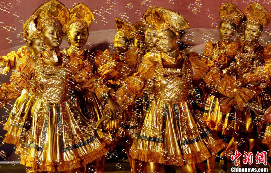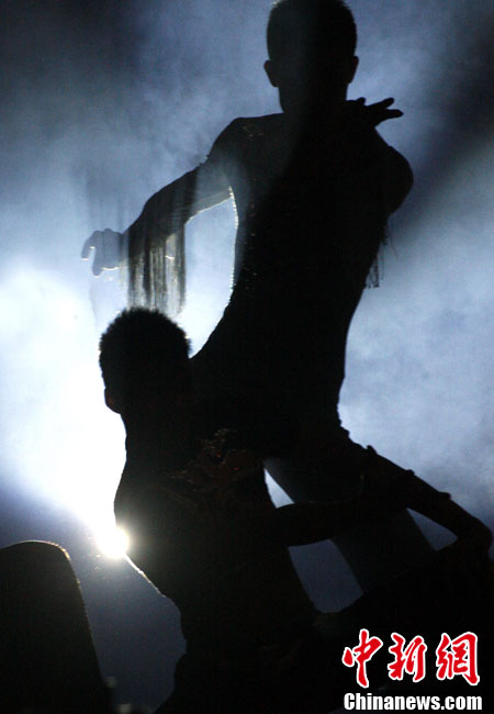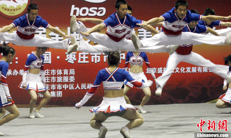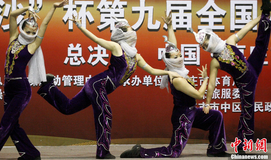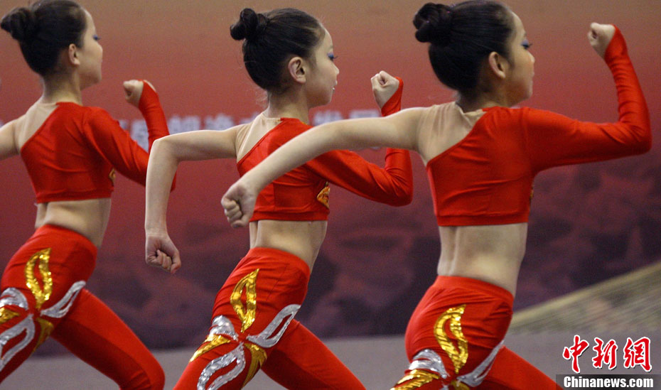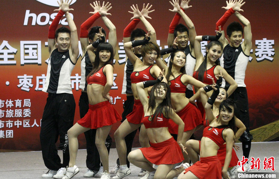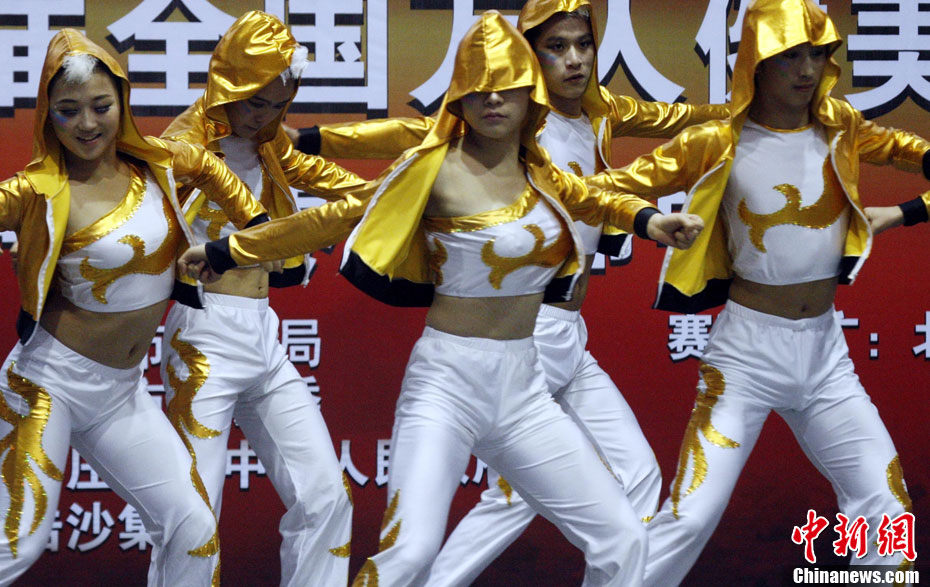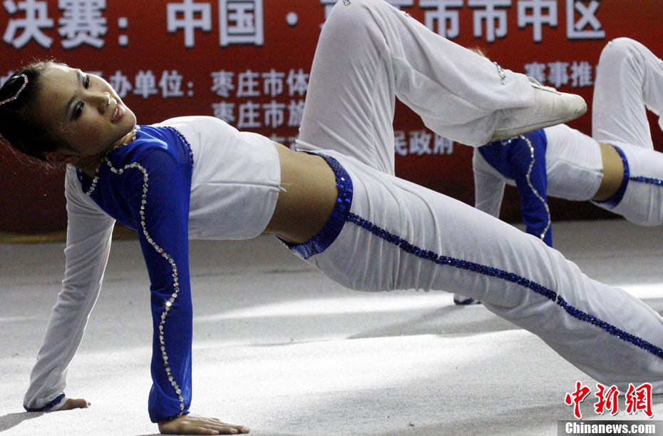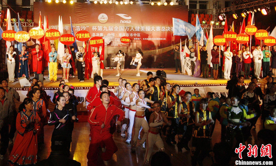 12月12日晚,正在山東棗莊市體育館舉行的2010年第9屆“浩沙杯”中國內地萬人健美操大賽舉行總決賽舉行頒獎晚會,來自中國內地20個賽區(qū)的194個代表隊1700余名健美操選手參賽,賽事分為少兒組、小學組、中學組、大專學院組、健身俱樂部組、職工組、中老年組、家庭組、自選動作和排舞組共10個組別。其中參賽的最小年齡選手5歲、最大年齡的70歲。圖為在頒獎晚會上獲獎的代表隊展示健美操風采。中新社記者 錢興強 攝