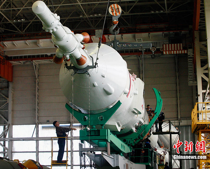 當(dāng)?shù)貢r(shí)間12月12日,哈薩克斯坦拜科努爾航天中心,俄羅斯聯(lián)盟TMA-20載人火箭在發(fā)射場(chǎng)內(nèi)的裝配車(chē)間接受升空前的檢查。俄羅斯新聯(lián)盟號(hào)將在12月15日前往國(guó)際空間站。