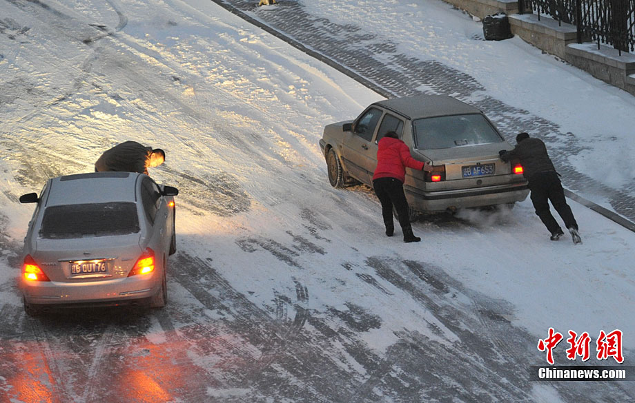 12月13日,山東降下今冬首場(chǎng)大范圍雨雪,并伴有大風(fēng)降溫,山東省氣象臺(tái)發(fā)布海上大風(fēng)黃色預(yù)警信號(hào)和寒潮藍(lán)色預(yù)警信號(hào),預(yù)計(jì)最低溫可達(dá)-12℃。部分高速路關(guān)閉,降雪在帶來(lái)交通不便的同時(shí),對(duì)山東的旱情有所緩解。董乃德 攝 圖片來(lái)源:CNSPHOTO