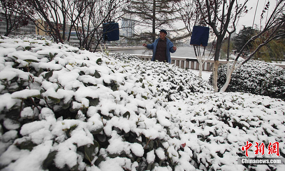 12月14日清晨,市民在落雪的車上寫下“下雪了”。當(dāng)日,江蘇淮安迎來了入冬首場雪。昨日上午,淮安上空開始淅淅瀝瀝的下起小雨并伴有大風(fēng),到今日凌晨時分,“羞羞答答”的雪花伴著小雨光臨淮安。陳忠軍 攝 圖片來源:CNSPHOTO