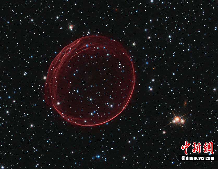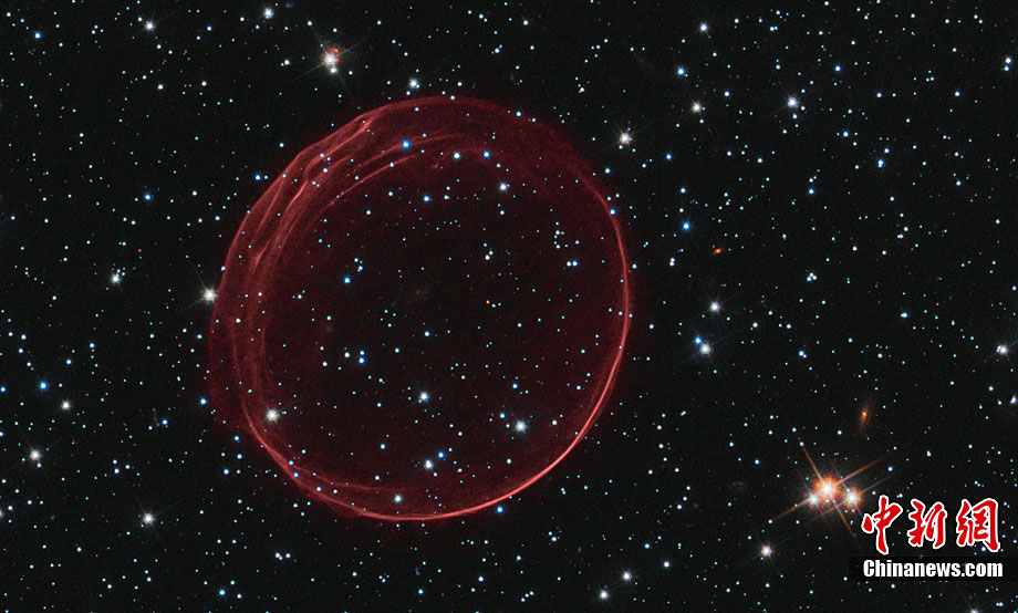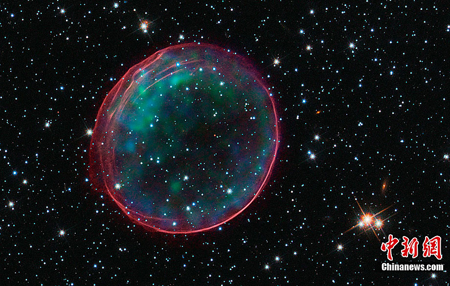 近日,美國哈勃太空望遠(yuǎn)鏡拍攝到了美麗的星系間“圣誕大氣泡”的照片。這個(gè)“圣誕大氣泡”是由400年前發(fā)生的超新星爆炸的殘骸形成的,它像一個(gè)精致的“殼”一樣漂浮在太空中。據(jù)悉,這個(gè)“圣誕大氣泡”是我們的臨近星系——大麥哲倫星云(Large Magellanic Cloud)中的一顆超新星在爆炸時(shí)發(fā)出的沖擊波及其噴射出來的物質(zhì) ,大麥哲倫星云與地球的距離為16萬光年?茖W(xué)家們將這個(gè)“圣誕大氣泡”氣圈命名為“SNR B0509-67.5”或者縮寫成“SNR 0509”。據(jù)悉,這個(gè)如氣泡狀的氣圈的直徑為23光年,并且正在以超過1100萬千米每小時(shí)的速度擴(kuò)散。另外,哈勃太空望遠(yuǎn)鏡拍攝到了“圣誕大氣泡”處于各種不同情況下的照片。
