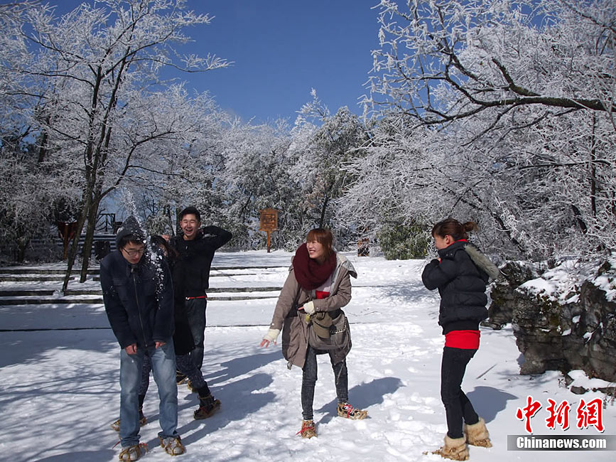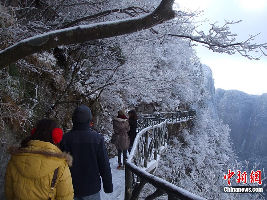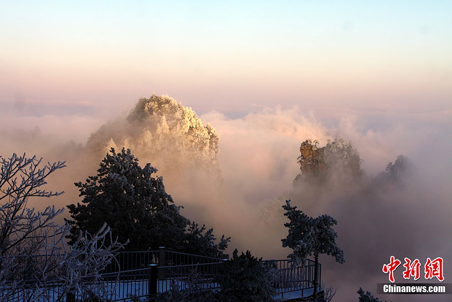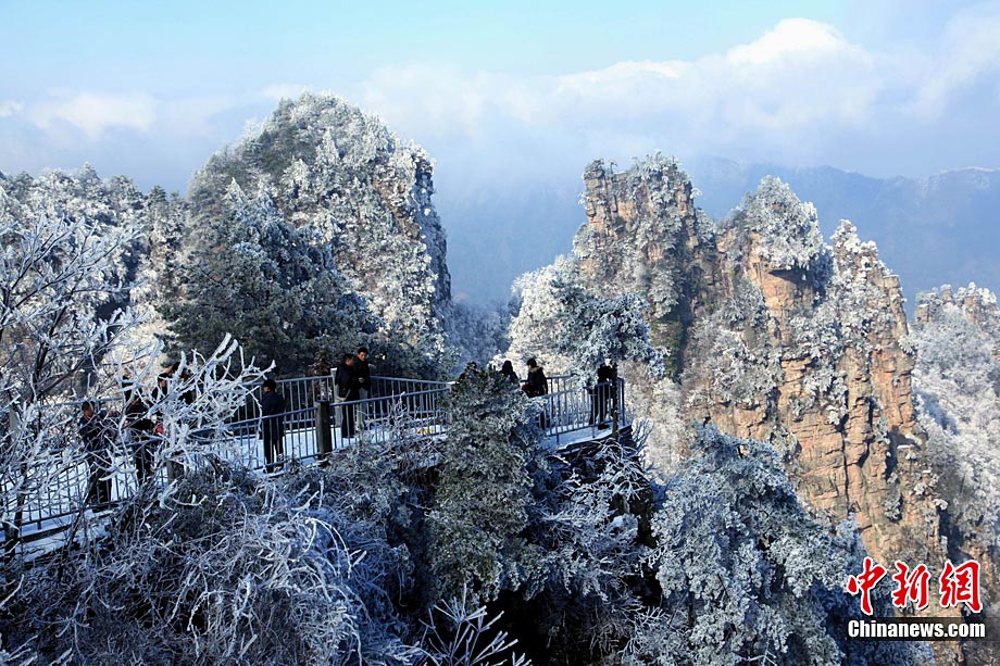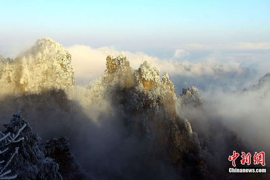 12月16日,世界自然遺產(chǎn)張家界雪后放晴,天子山、黃石寨等景點出現(xiàn)美輪美奐的云海奇觀。白雪覆蓋的石英砂巖峰林,在云蒸霞蔚之間更顯色彩斑斕,恍若仙境,令海內(nèi)外游客無不陶醉其中。王傳殊 鄧道理 攝