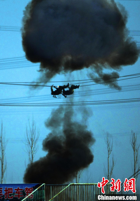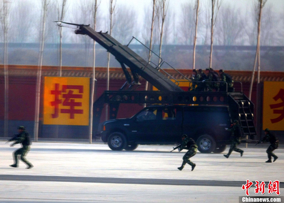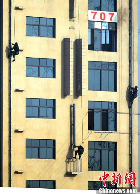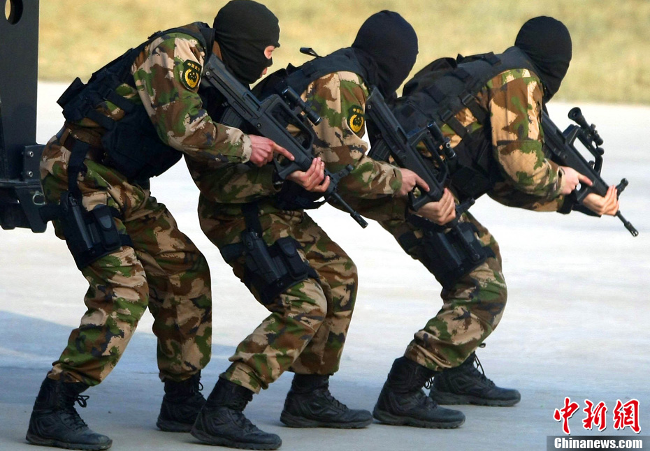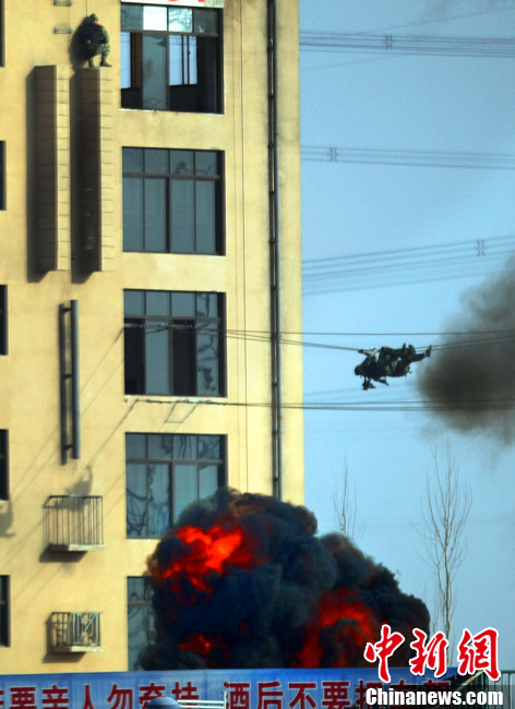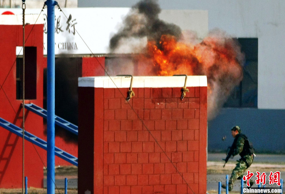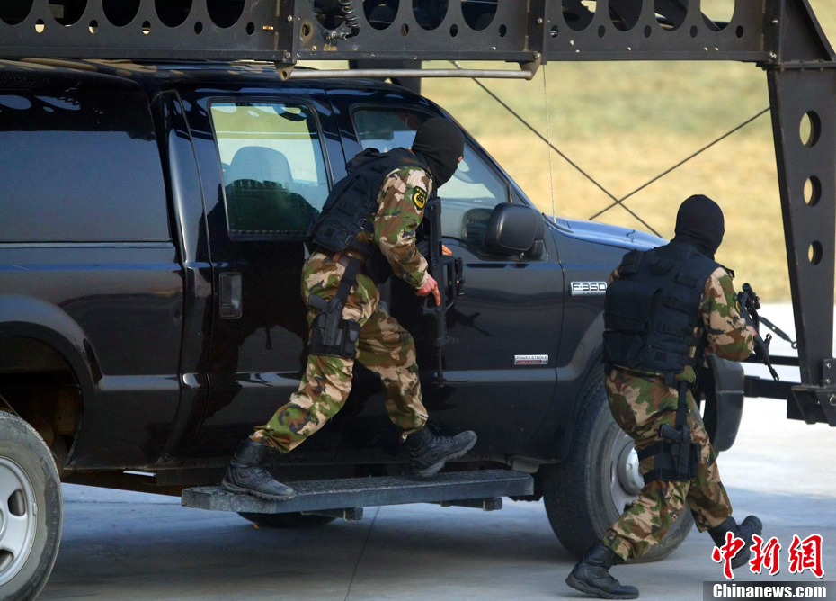 12月18日,中國(guó)武裝警察部隊(duì)武警特警學(xué)院特戰(zhàn)隊(duì)員在北京進(jìn)行處置突發(fā)事件訓(xùn)練。該所院校以訓(xùn)練防暴和反劫機(jī)為主要科目,培養(yǎng)出的學(xué)員在國(guó)家安全保衛(wèi)工作中發(fā)揮著重要作用。中新社記者 宋吉河 攝
